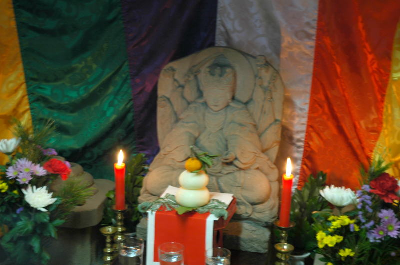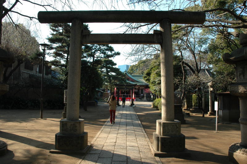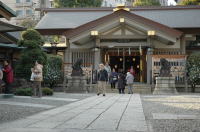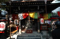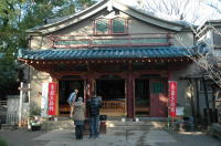 | 妙円寺では神様が同居している。七福神めぐりでは色紙を購入してそれぞれのお寺で参拝の証明をもらうのだが、ここでは靴を脱がなければならないのはちょっとつらい。 目黒通りをさらに都ホテル方向に進むと、次の目的地。 |