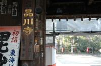 旧品川宿は、JR品川駅よりも南に位置していた。京浜急行の北品川駅が、JR品川駅よりも南にあることがその査証であろう。品川宿があったのは京浜急行新馬場駅あたりの、目黒川河口あたり勝手に解釈している。ジョージ秋山さんの「浮浪雲(はぐれぐも)」の舞台が品川宿となっていることが、私にとって品川宿の一番の印象である。この看板によると七福神めぐりは正月七日まで、または立春の日となっており、節分のこの日は、季節外れとなるのだろうか?各寺社では豆まきの用意がされていたが、幸か不幸か時間帯が少しずつずれていたので、豆まきの人の群れには遭遇せずに済んだのだった。 |