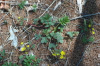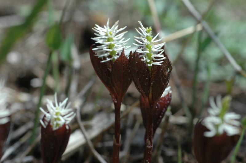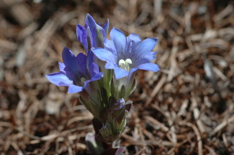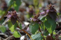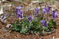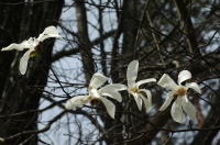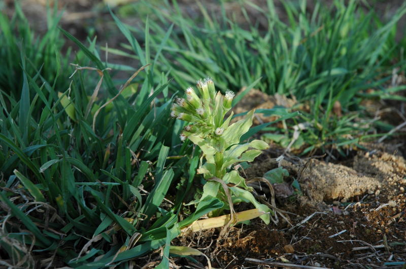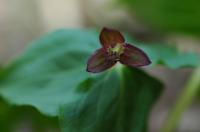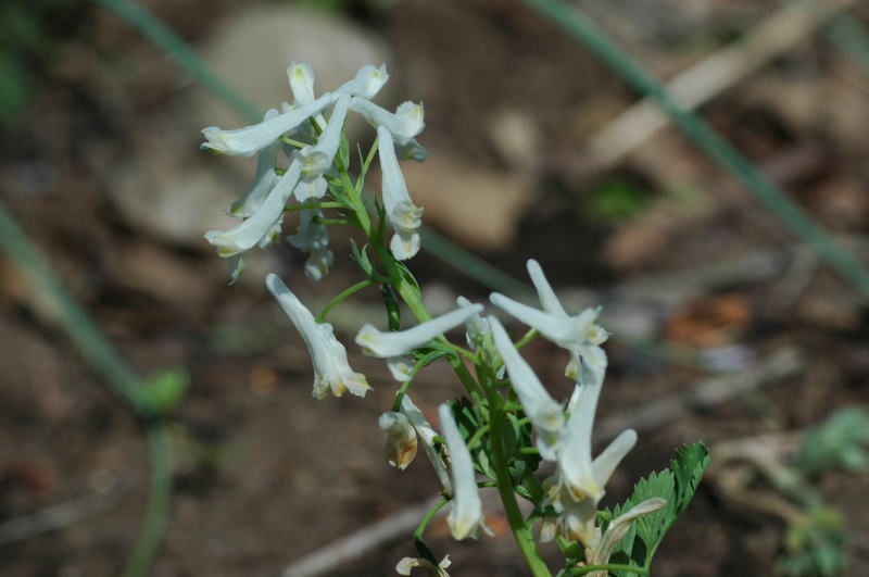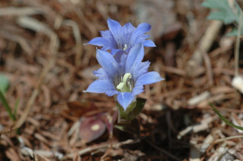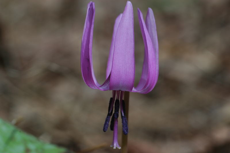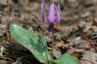 | 二日目のウォーキングは信玄の棒道、約5Km。標高1200mくらいになる棒道ではカラマツの新芽が芽吹き始めたばかり。木が少し黄緑色に染まっている程度で、まだまだ色のない世界だったので写真は撮らなかった。サントリーウィスキーの貯蔵所脇を抜けて、ウィスキーのほのかな香りを楽しんだところで、カタクリを見つけた。 見つけたつもりだったのだが、ペンションを営んでいる人が植えたもので「こっちのほうが沢山あるわよ」と声をかけられ行ってみると、カタクリのほかにエンレイソウなども咲いていて、熱心に野草を育てている方らしい。 |