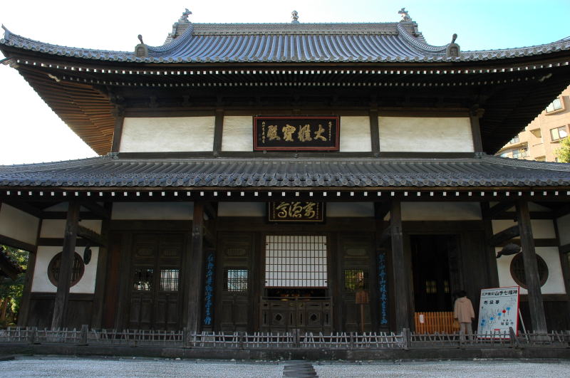 | 瑞聖寺は大きな社殿が印象的。布袋尊の撮影はフラッシュ禁止なので、ぶれてしまった。デジカメではこのような場合に感度をあげて撮影すべきなのだが、フィルムカメラの癖でそんなことは忘れて撮影してしまった。 この後都ホテルの前を通過し、目黒通りが桜田通りとぶつかるところが最後の目的地となる。 |