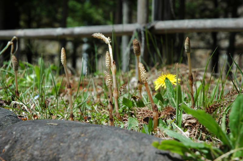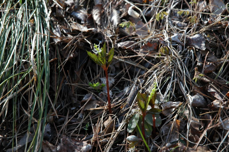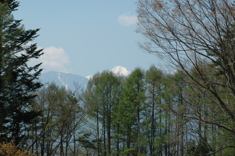 | テレビのニュースでは高速下り線渋滞の様子を伝えている。混雑を避けるために車はおいて、菊さん邸から歩き始めた。この日は前日よりも標高を下げて1100mあたりを散策する。小荒間から信玄の棒道に入り、女取湧水へ。名水100選に選ばれ長坂町の水道水の源になっているこの湧水を訪れるのは久しぶりだ。標高1100mではコスミレが咲き、1140mの女取湧水付近ではタチツボスミレが咲き乱れる。標高のわずかな差が微妙な季節の違いを見せてくれる。 棒道で唐松の新緑を眺めていると、左の森から出てきたリスが、枝から枝へ飛び移り右の森へと消えていった。ほとんど地上に降りることなく木から木へと飛び移る見事な様子をしばらく眺めていた。 クサボケが地面からわずかに出たところに花をつけ、フデリンドウの小さな花もあちらこちらに見ることが出来る。花盛りとまではいえないものの、GWは棒道の散策シーズンの幕開けのようだ。 八ヶ岳公園道路を渡り、道の駅こぶちざわへ下りてくるルートにはタラの木が沢山ある。タラの芽はほとんど採られてしまっているものの、見逃されたものもあるようで立派なタラの芽を写真におさめることが出来た。このルートの途中でも雉のつがいに出会った。 |