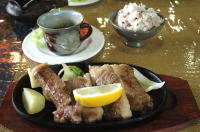 | 昼食は森のキッチンかわいで十勝牛のステーキ! 街から少し外れたところにある、落ち着いた感じのレストランでなかなかよい雰囲気!「北海道でおいしい牛って聞いたことない!」との声もあったが、カットサーロインステーキを注文した。 美味! やわらかくて味があり、再訪の価値があるステーキだった。ご飯は十六穀米でさっぱりとおいしい。ついつい食べ過ぎてしまうほどだ。鹿追を通ることはめったにないと思いますが、少しくらい遠回りをしてもこのレストランを訪れる価値はあると思います。 |