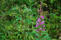 | 大町から穂高へ戻り、10Kmの山道を車で登って有明温泉へ。標高1,300mにあるこの温泉、泉質もさることながら露天風呂を吹き抜ける風がこの時期なんともありがたい。 車での下山途中で沢の脇に車を止めて、花の写真を撮った。 |