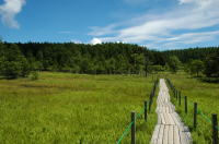 | 全国的に猛暑の中、標高1,000mにある菊さん邸でも昼間は暑い! 涼しくて人の少ないところ!を考えた結果、久しぶりに入笠山に行くことになった。標高1,955mの入笠山の山頂付近1,810mにある大阿原湿原は、ご覧の通りに貸しきり状態だった。 |