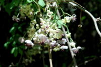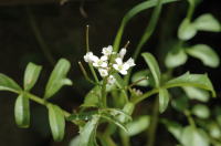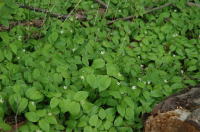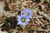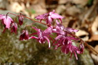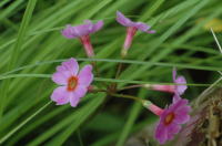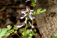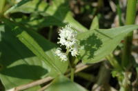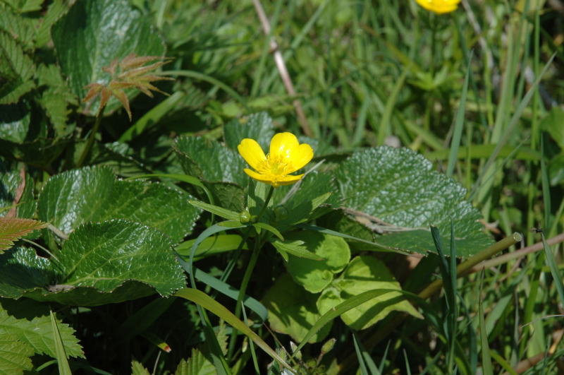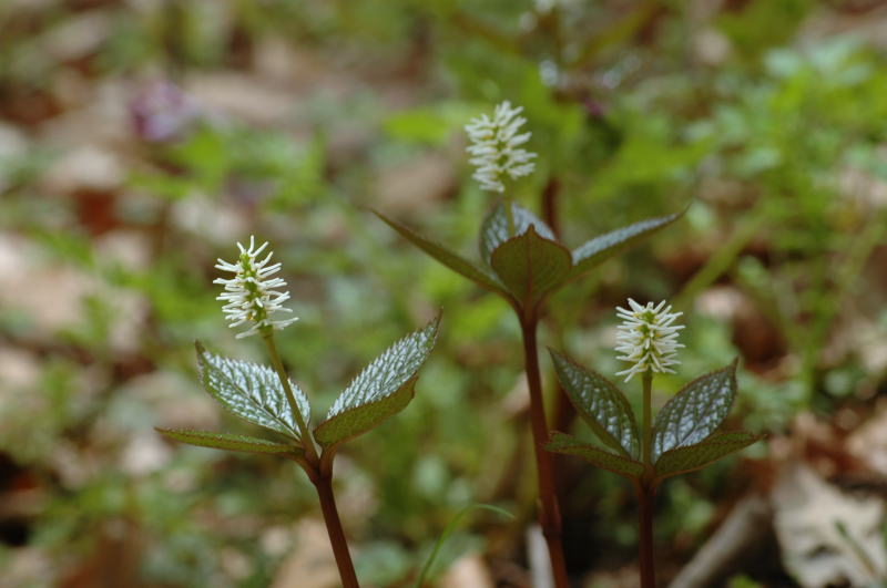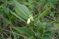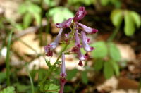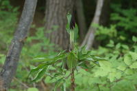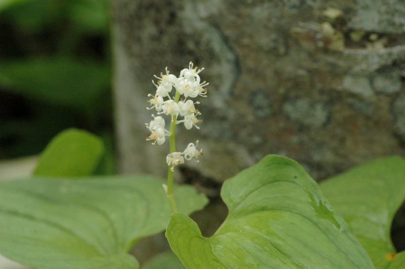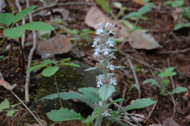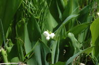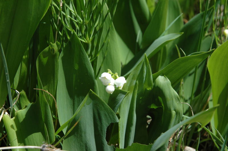 ![]() 深沢温泉までのルートは簡単に発見できた。オオムラサキ自然観察歩道の看板によると、日野春までの距離は8.3Km。全行程10Kmとなり夏のウォーキングにはちょっときついかなーという印象。ルートを長坂駅方面に取ると、きつい上り坂の途中で、ジュウニヒトエ(写真左)が花を咲かせている。駅近くではもうスズランの花を見ることが出来た。 |