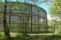 長坂から日野春まで中央線で移動し、オオムラサキセンターへ。びばりうむ(写真)の中ではオオムラサキの幼生が羽化を待っていることだろう。7月にオオムラサキが乱舞する姿が目に浮かぶようだ。自然観察歩道は看板が新しく整備されているので、ルートで迷う心配はなさそうだ。 |