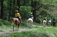 | 連休真っ只中のこの日は車を置いて、棒道ウォーキングに出掛けた。よく晴れてちょっと暑いくらいではあるが、湿気がないので気持ちのよいウォーキング日和となった。普段はひっそりとしている棒道もたくさんの家族ずれがウォーキングを楽しんでいた。棒道はホースライディングのルートとなっているので、時々こんな一団に出くわすのだ。 | ||||||||||||||||||||||||||||||||||||