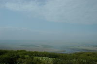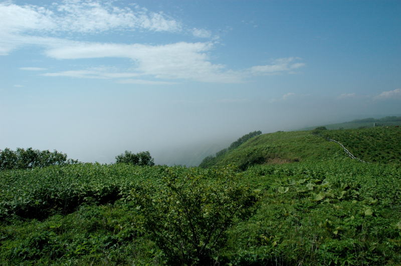 | 国道44号を進み厚岸に近づいてくると小高い山が霧に覆われたこれまで見たことのないような風景。厚岸大橋の手前で見えているのは愛冠岬だろう。海からわきあがった霧が絶壁を昇り岬を覆っている。まるで大きな滝が海に流れ込んでいるような壮大な風景だった。すでに通り過ぎてしまった厚岸望洋台からなら写真におさめることが出来たかも?ただ景色が壮大すぎて写真で表現するのは難しそうな印象だった。 さて写真はその先のあやめが原で撮影したものだ。ヒオウギアヤメはまだちょっと早かったがボツボツと咲き始めたところ。広さ100ヘクタールに、30万株のヒオウギアヤメが咲き乱れるということ。 本州では珍しい部類に入りハクサンチドリも、あちこちで咲いている。海から霧が昇ってくる様子を間近で見ることが出来る。当初の予定には入っていなかったのだが、ここに立ち寄ったのは正解だった。 |