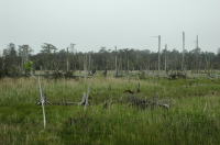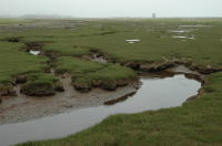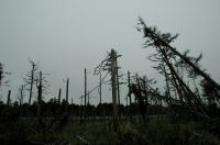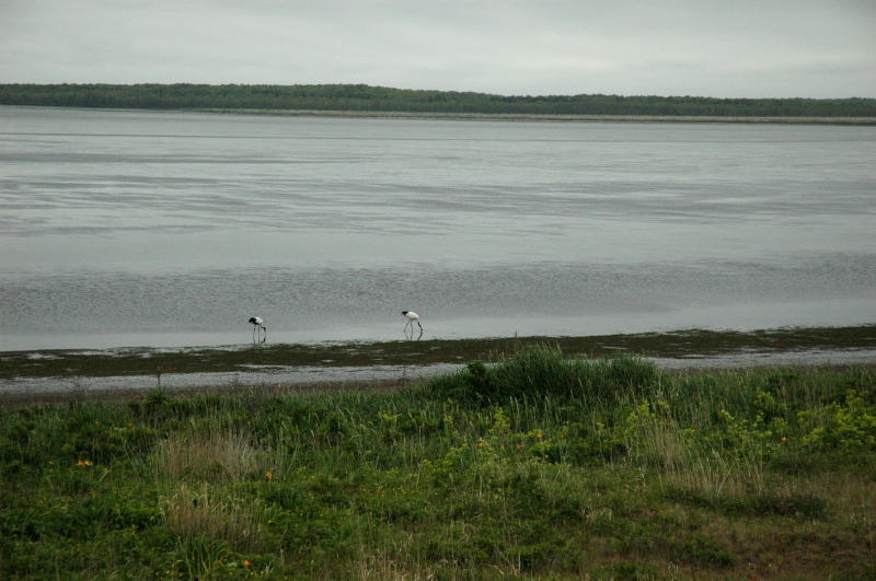 | 野付半島の砂州は20Kmにわたってドライブすることが出来る。その途中ナラワラ(ミズナラなどが立ち枯れた様子)の手前で丹頂鶴を発見!車を停めて写真を撮ったがいまいち近づけなかったことが残念だった。でも野生動物との出会いはこんなものだろう。ちなみにこの日はキタキツネの姿も見ることが出来た。 トドワラ付近には前回来た時にはなかった野付半島ネイチャーセンターが出来ていて、周辺の自然情報を提供してくれる。トドワラにはここから歩いてゆくのだが、この日は気温が低すぎて雨も降ってきたこともありトドワラ行きを断念した。野付半島は自然の宝庫で、何度でも訪れたい場所である。 |