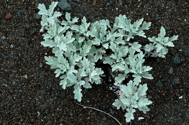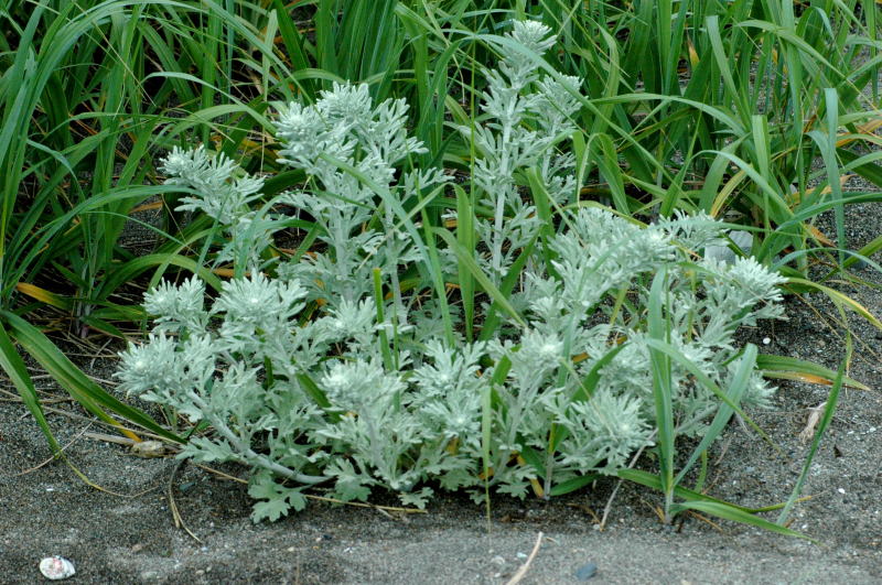 | 北太平洋シーサイドラインから海岸へ抜ける道を見つけて海岸へ。夏の北海道旅行の目的のひとつであるシロヨモギを発見。「今年は早いからシロヨモギが採れなくてもいい」といっていたM先生はさっそく採取。鵡川のものと比べるとグリーンがかっていた。いつもより季節が早いから?もしくは霧の多い場所なので効率的に光合成をするためだろうか? | ||||||||||||||||||||||||||||||||||||