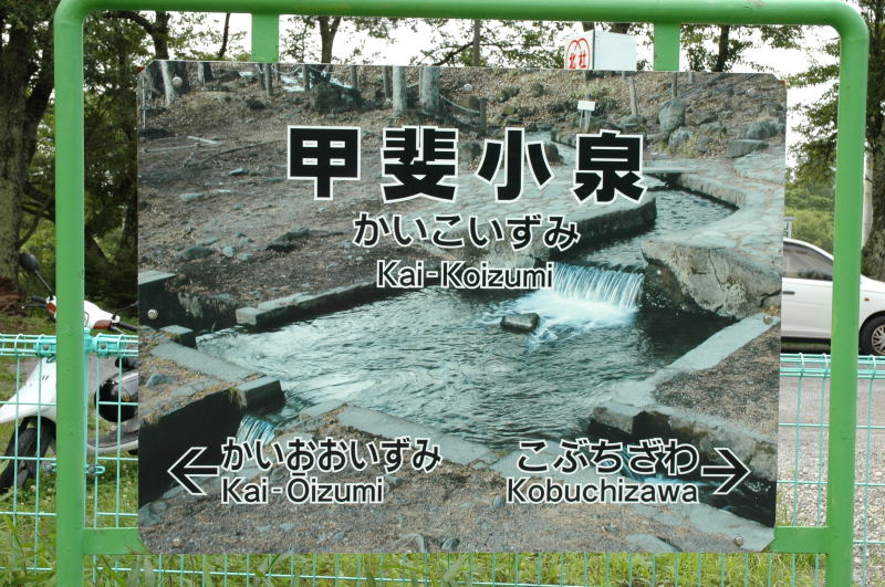 ペンションの車で小淵沢駅まで送ってもらってみんなの宿泊荷物をコインロッカーに預けた。「小泉まで行きましょうか?」と言ってくれたのだが、小海線に乗ってみたい気持ちがあって小淵沢駅でおろしていただいた。小海線は結構な急勾配を力強く走り、甲斐小泉駅に到着した。 |