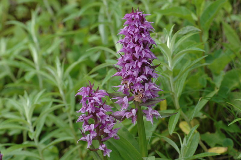 ![]() 八幡平レストハウス付近で紫の花が気になり車を停めてみるとハクサンチドリが可憐な花を咲かせていた。それもかなりの数。予想外の花、澄み切った青空、吹き抜けるさわやかな風。このあたりが今回の旅行のピークだったかな? |