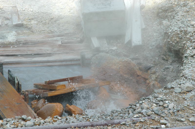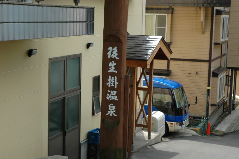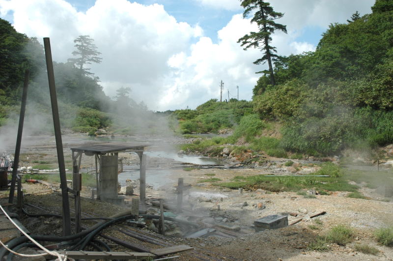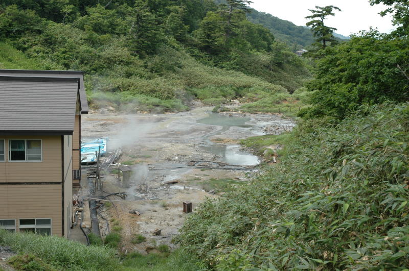 | その名前くらいしか知識のないまま後生掛温泉を訪ねた。車を停める前からもうもうと湯気の立ち上る泥の川に圧倒された。 後生掛温泉は典型的な湯治場のイメージだ。そしてそのお湯のパワーはすごい!粘土のような泥が溶け込んでいる「泥湯」は温度は低くていくらでも入っていられる感じなのだが、「10分(5分だったかも)以上入浴しないでください」との注意書きがある。注意書きどおりに入浴したのだが、その後の倦怠感がこの温泉のパワーを感じるところだ。 |