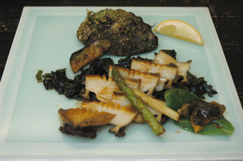 盛岡での夕食は番屋ながさわ。三陸の海の幸を堪能できるお店だった。「駒ケ岳に行けなかった分をみんな使ってしまおう」とぜいたくな夕食を楽しんだ。でもなんかもやもやしたものがあったのかな?食べるものの写真を撮り忘れていたことに気づいたのは最後の一品のあわび(左の写真)を食べ始めたときだった。 |