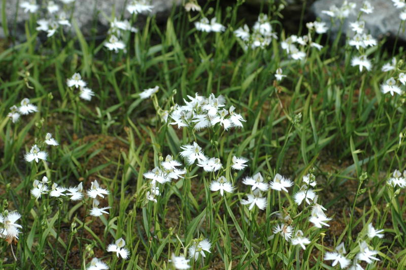 | 日本一のコマクサ群生地、秋田駒ケ岳の予定だったに 今年三月の秋田旅行で「秋田駒ケ岳のコマクサは日本一の群生地で、一般車両が通行止めになる5時半前に八合目まで登ってしまえば時間に余裕を持って見に行くことが出来ます」と言う田沢湖自然体験センターの佐藤さんの話に触発されて、今年は北海道ではなく秋田を目指すことになった。 しかし悲しいかな天気を味方につけることが出来ず、かなり残念な結果に(T.T) 写真 カメラ:Nikon D70 撮影モード:3008×2000ピクセルNOMALモード フォトレタッチソフトで色調濃度の調整を行い200×134ピクセルにサイズ変更。 写真をクリックすると400%拡大写真を表示します。 |
