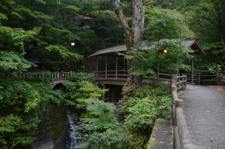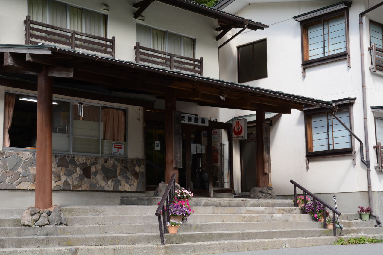 | 湯みち街道を上り、目指したのは「明治温泉」。この温泉の売りは「古の霊泉は橙色に輝く明らかに治る湯」。いつも一緒に旅行していた友人が体調を崩し、ようやく旅行に出たくなるくらい元気になったので、快癒を目指して明らかに治る「明治温泉」を目指したのだ。しかし混んでいるように見えたので行き先を渋辰野館に代えたらこちらは珍しく休館。成り行きで最上部にある渋御殿湯で温泉に入ることになった。温泉宿のホームページから引用する。 | ||||||||||||||||||||||||||||||||||||