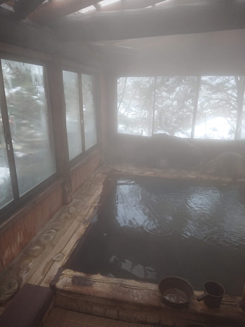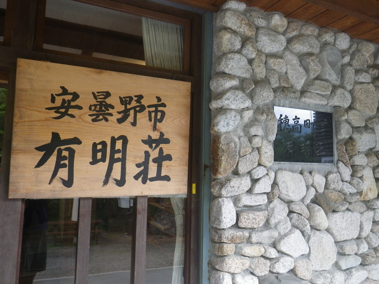 | 有明山神社から一本道の山道を登ってくる。到着した頃ちょうど雨が降り出し、帰りにはやんでいた。露天風呂は屋根に覆われている部分があり、雨の中でも気持ちよく入浴できた。前回ここへ来たのは2008年8月11日なので10年ぶりとなる。その時露天風呂を飛び回るアブに辟易とした覚えがあるのだが、今回は雨が見方をしてくれたのかアブにはあわずゆっくりとアルカリ単純泉を楽しむことができた。 | ||||||||||||||||||||||||||||||||||||