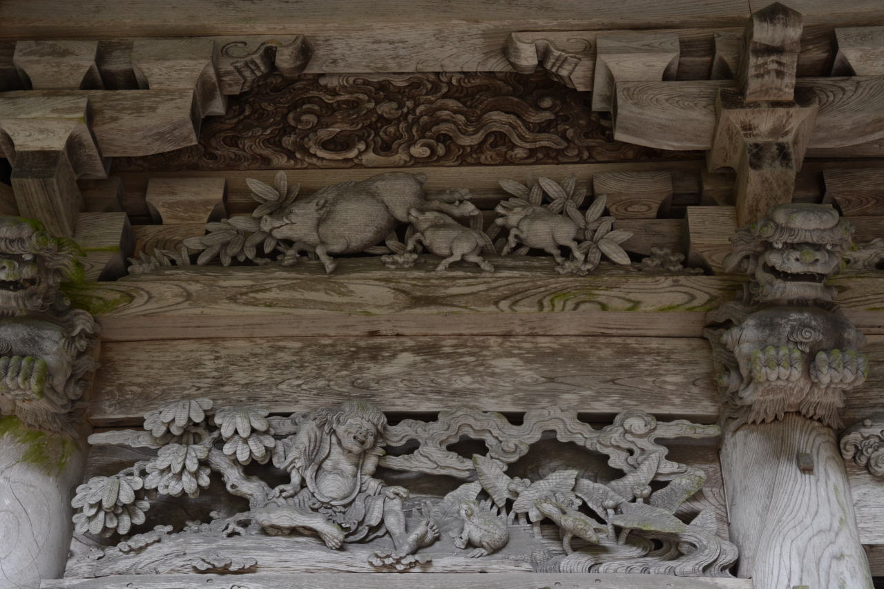 | 天井絵や彫り物が立派な山門。 | ||||||||||||||||||||||||||||||||||||