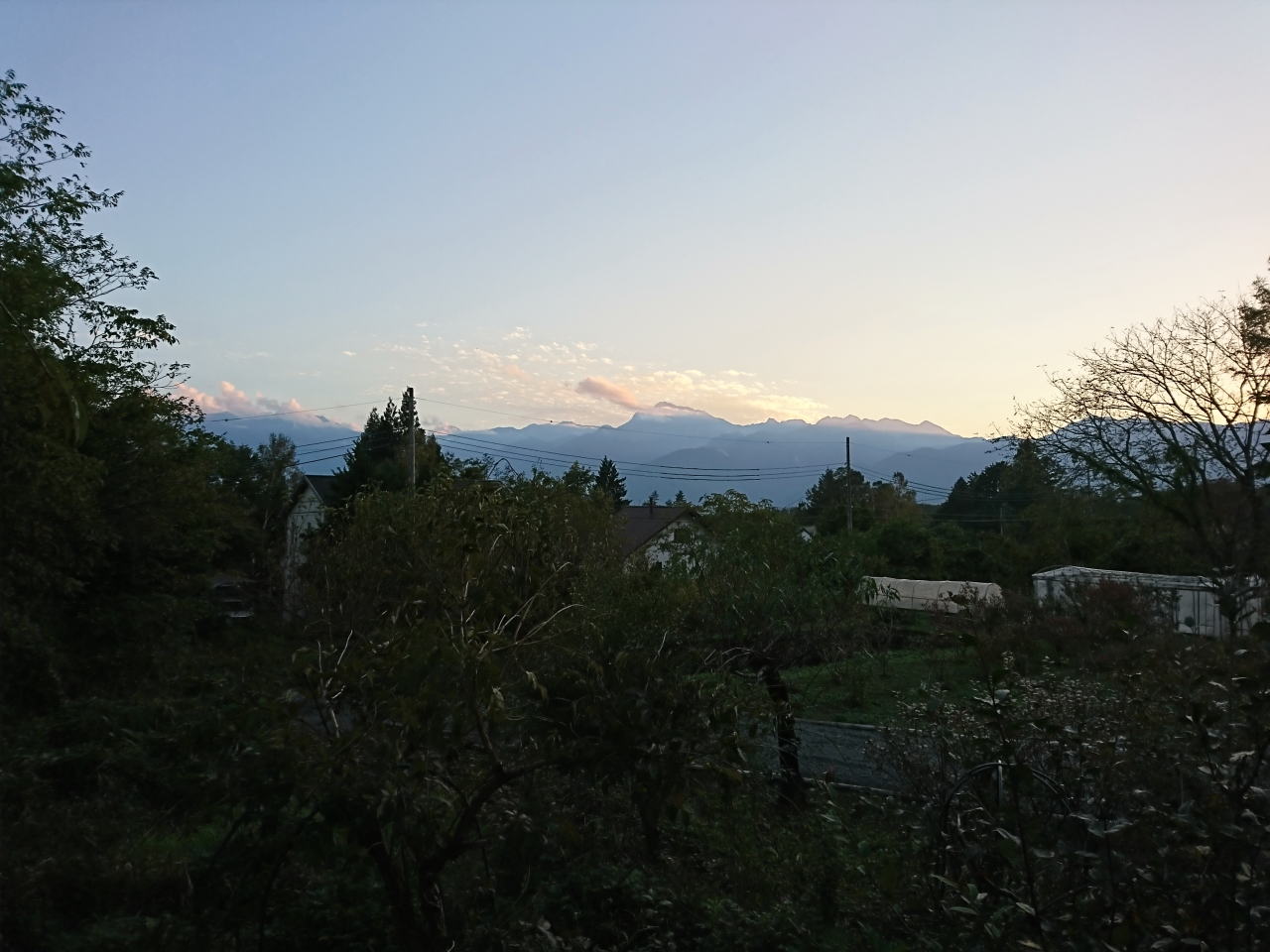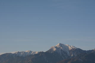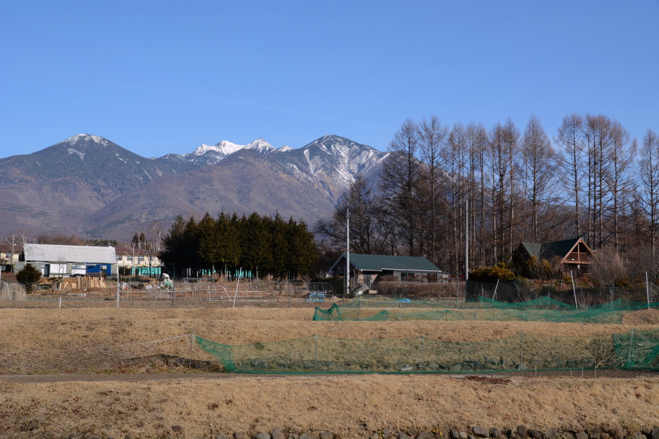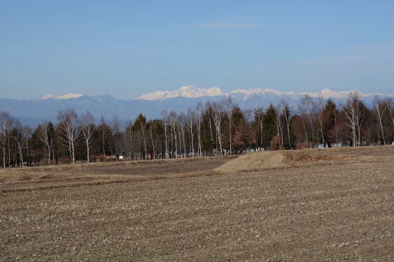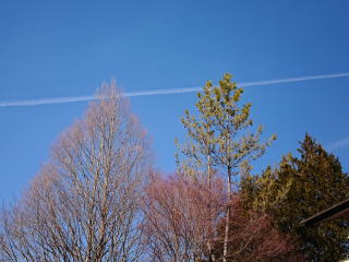 | たてしな自由市場へ向けて出発。天気は下り坂のようで、ひこうき雲がきれいだ。この日は水曜日で行ってみたら市場はお休み、北アルプスの写真を撮って時間をつぶす。 | ||||||||||||||||||||||||||||||||||||