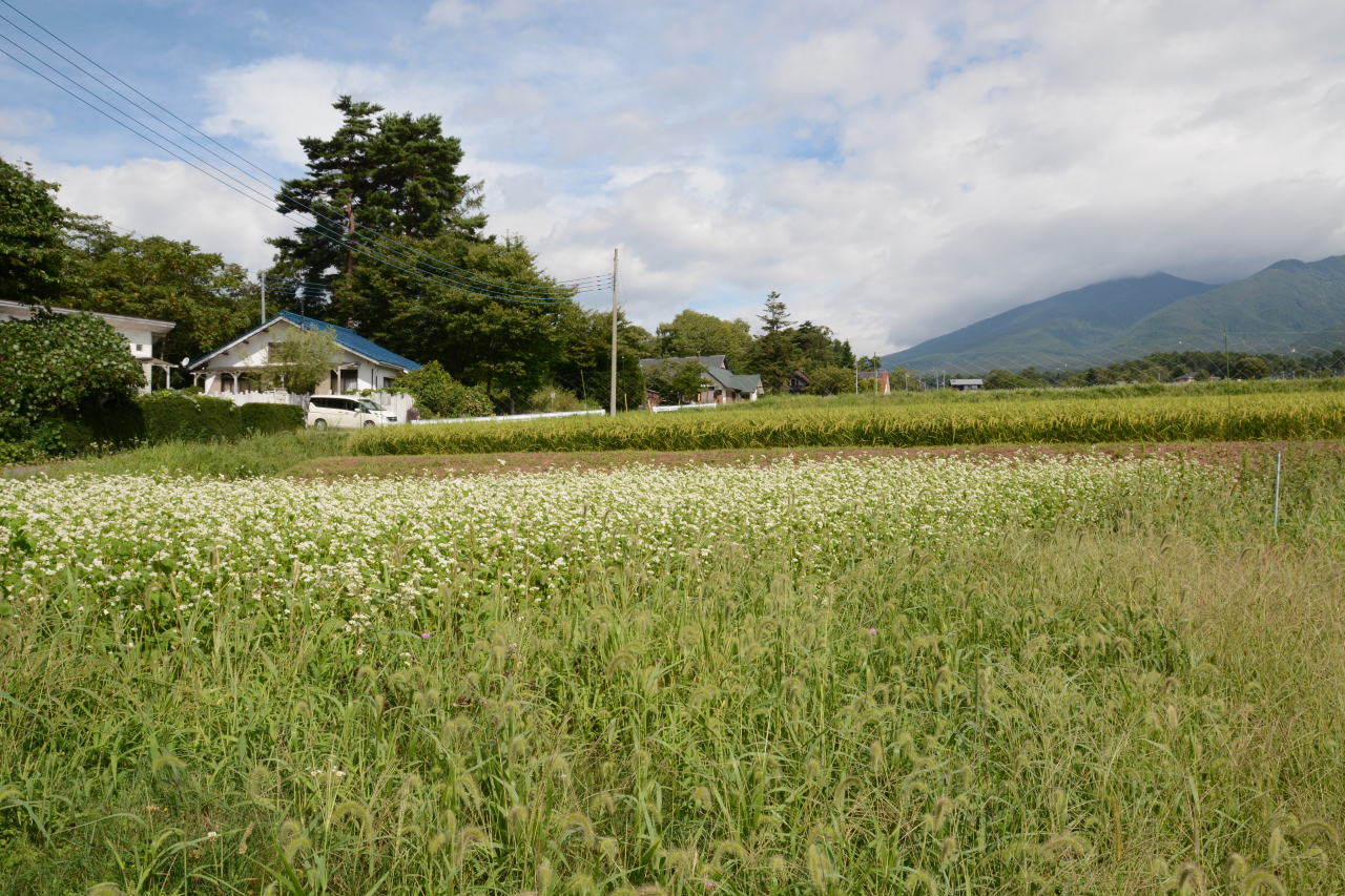 | 朝は曇りがちだが日が昇るにつれて雲が取れて南アルプスの山々や甲斐駒ヶ岳がうっすらとその姿を現す。高原の枝豆とトウモロコシを購入しようと車で走り回ってみたものの、皆空振りに終わった。お盆の週まではあちらこちらの販売所に並んでいるのだが、お盆の週で売り切ってしまい販売終了らしい。仁生園から小泉小学校へむかう斜面の棚田は、八ヶ岳を撮影する絶好ポイント。久しぶりに通ってみると蕎麦畑が増えている。この場所だけでなく、八ヶ岳南麓は蕎麦畑増殖中。これまで豊富な八ヶ岳の伏流水を利用したコメ作りが盛んだったのだが、蕎麦の方が手間いらずなのかな?三分一湧水で水を差配した武田信玄も、多くの蕎麦畑にびっくりすることだろう。 | ||||||||||||||||||||||||||||||||||||