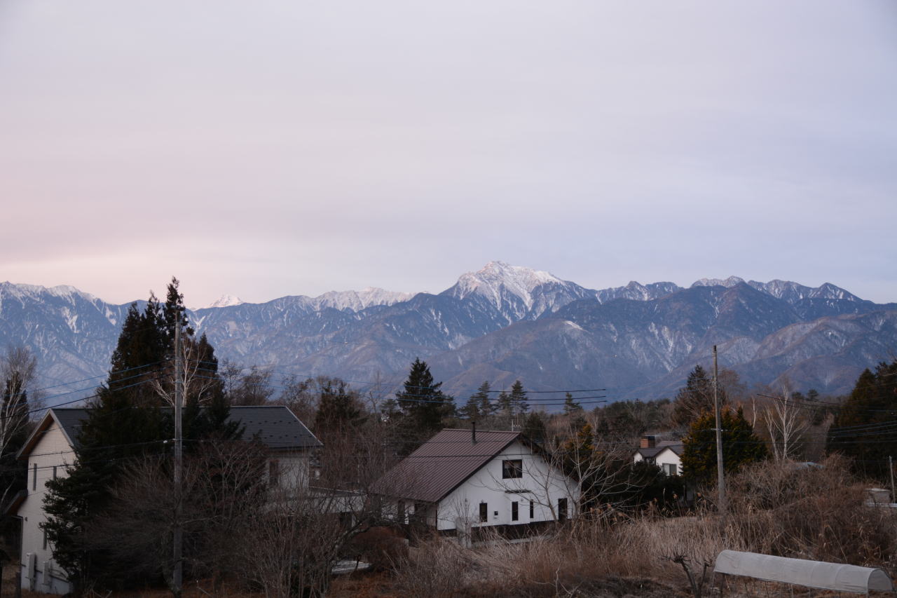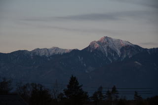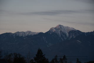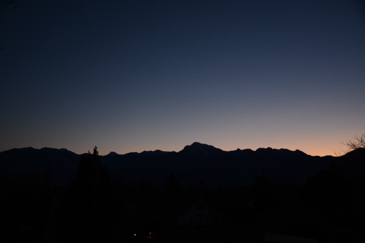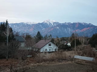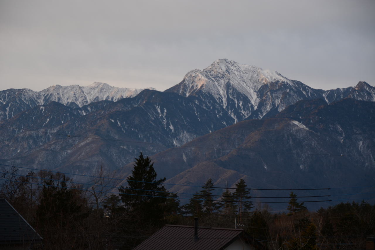 寒いとは思っていたが想像を超えていた。陽が落ちるとともに気温は氷点下となり、夕食時には氷点下4度。甲斐駒ヶ岳のシルエットを楽しむ余裕はなかった。 |
