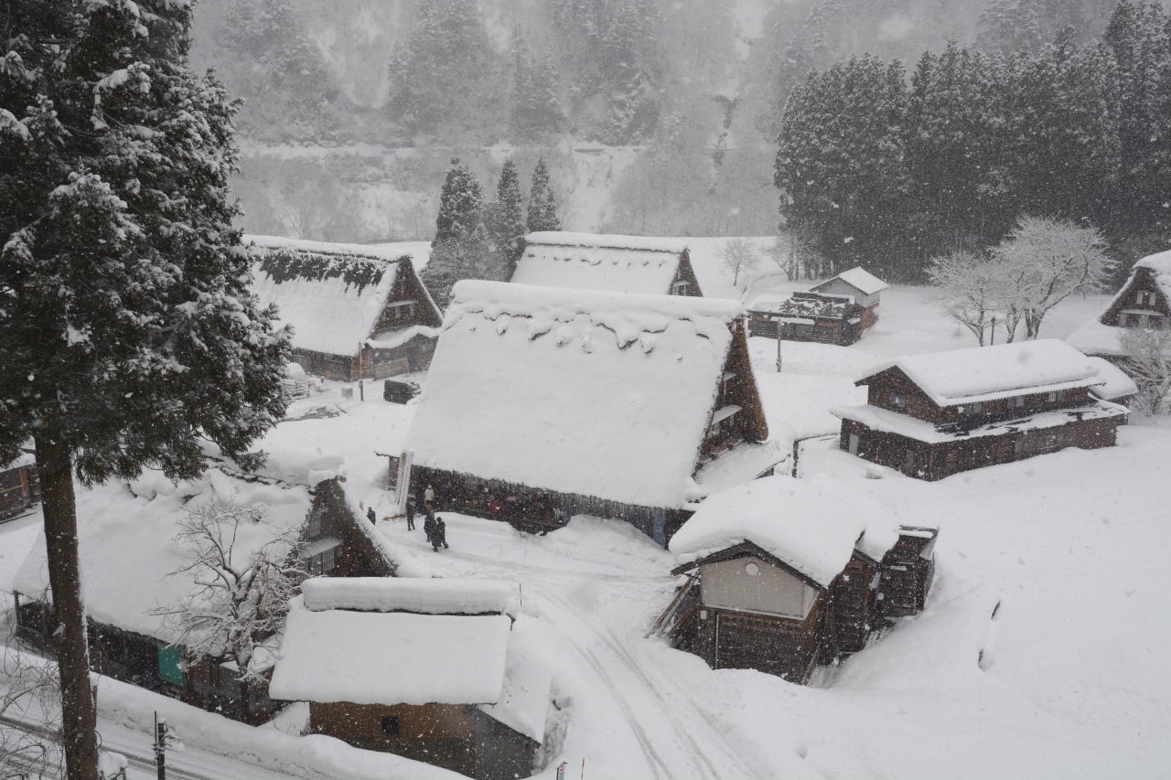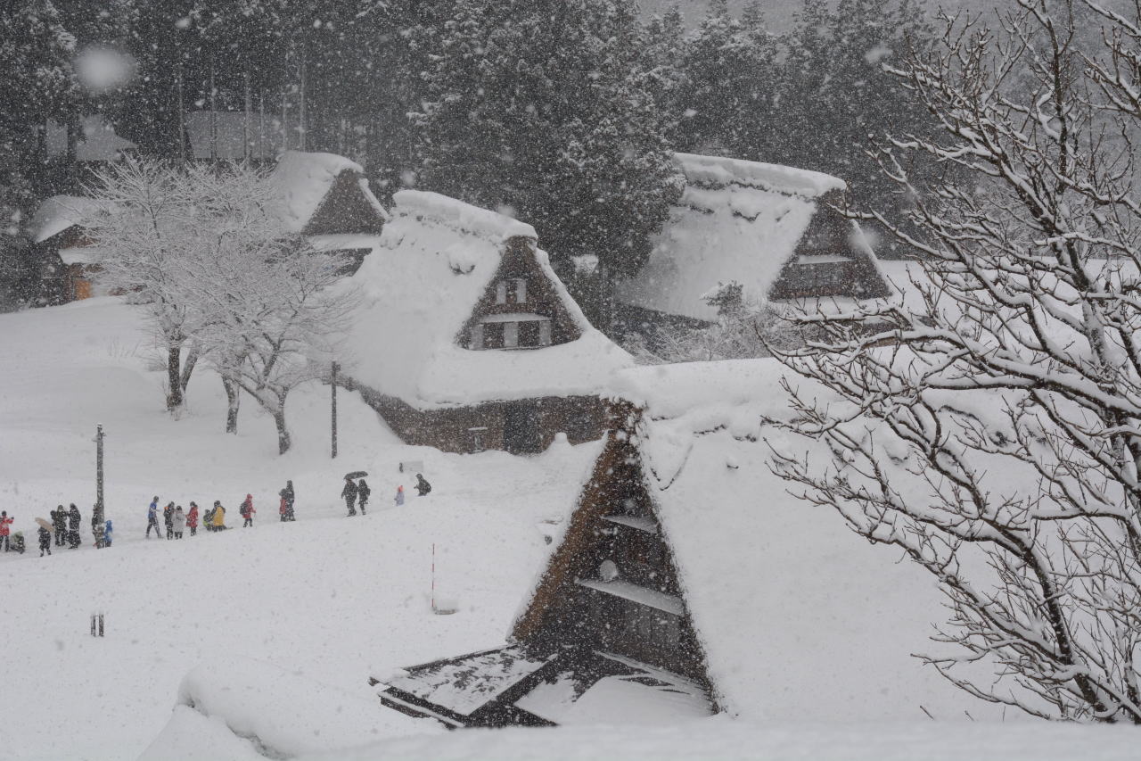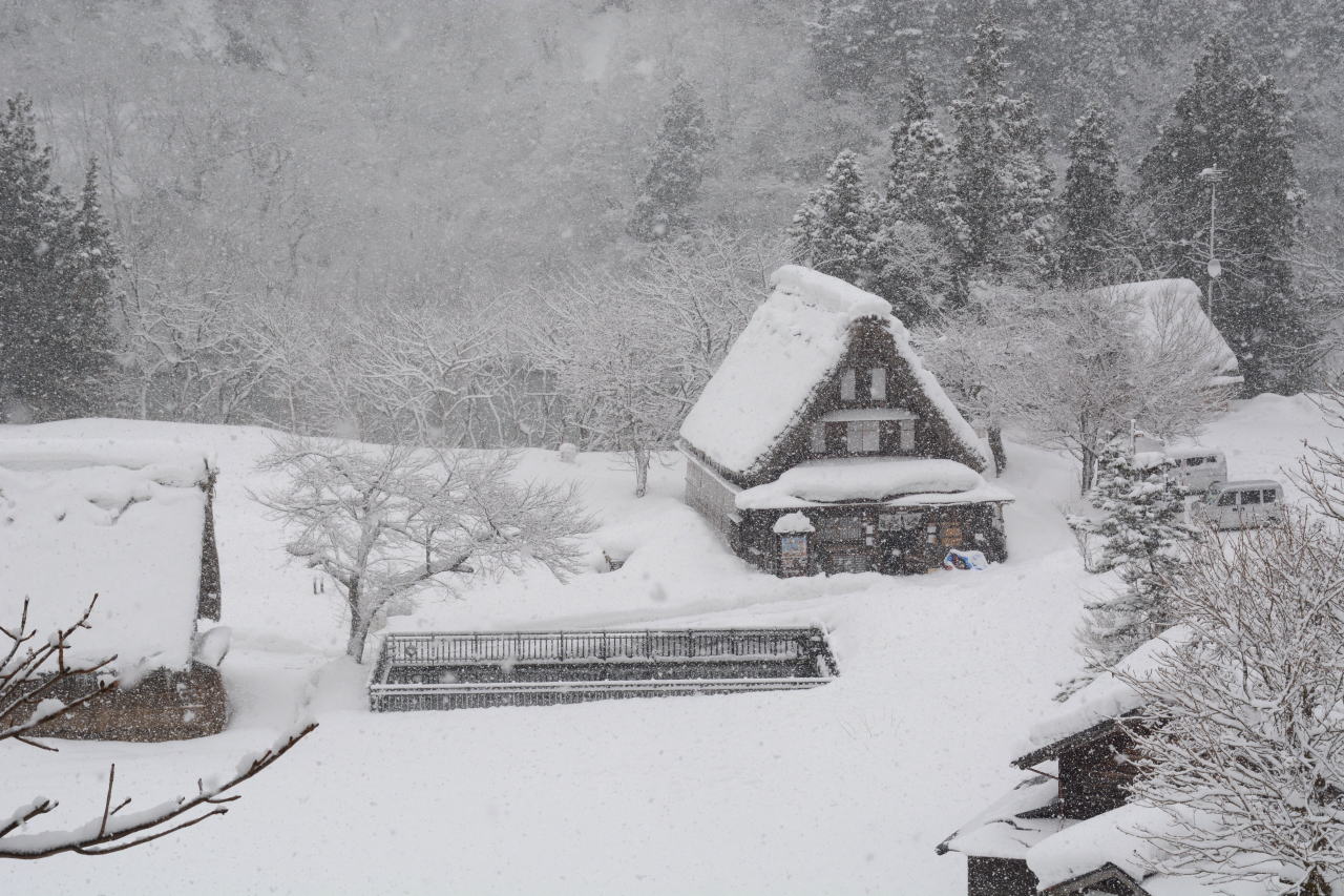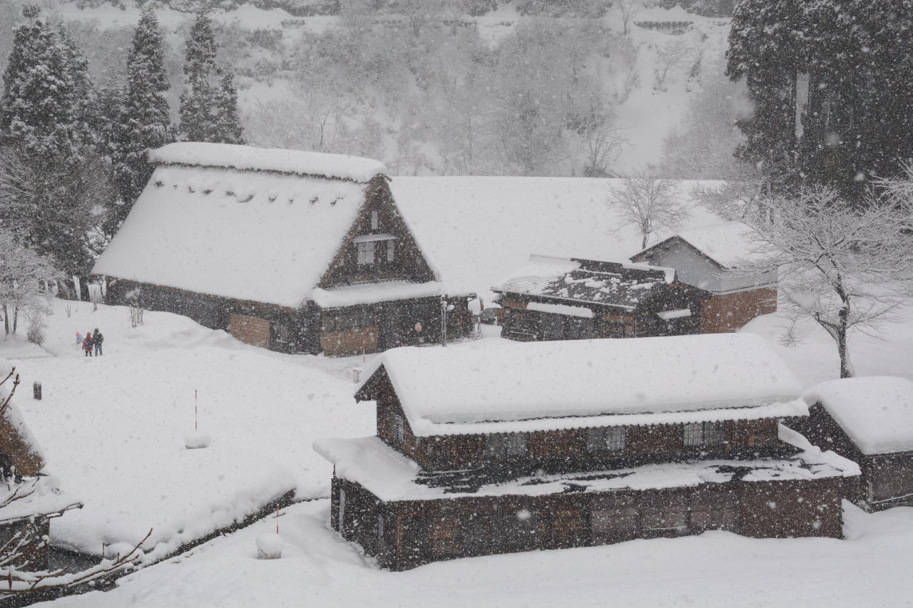 | スーパーセンターシマヤ砺波店で買い物をした後、砺波IC→北陸自動車道→小矢部砺波JC→東海北陸自動車道に入った。ずっと上り坂の東海北陸道は標高が上がるに従い雪が強くなり、ほとんどウェット状態だったが五箇山ICあたりでは路面に積雪が見られた。 「白川郷・五箇山の合掌造り集落」の名称で1995年12月にUNESCOの世界文化遺産に登録されており、今回のルートでは五箇山と白川郷の両方を通ることになる。どちらを訪れようかと調べてみると、白川郷が圧倒的に有名で観光地化しているという記事を読み五箇山を訪れることにした。到着した時には観光バスが三台、その後も続々と観光バスが到着し、エレベーターで集落へ下りてゆく。私は集落へ下りず、展望台から写真を撮るだけにした。この記事を書きながらWikipediaを調べてみると、白川郷荻町集落が大規模、五箇山相倉集落が中規模でこの菅沼集落が小規模な合掌造り集落として世界遺産登録されているということらしい。菅沼集落はまとまっており、フォトジェニックだと思う。 |