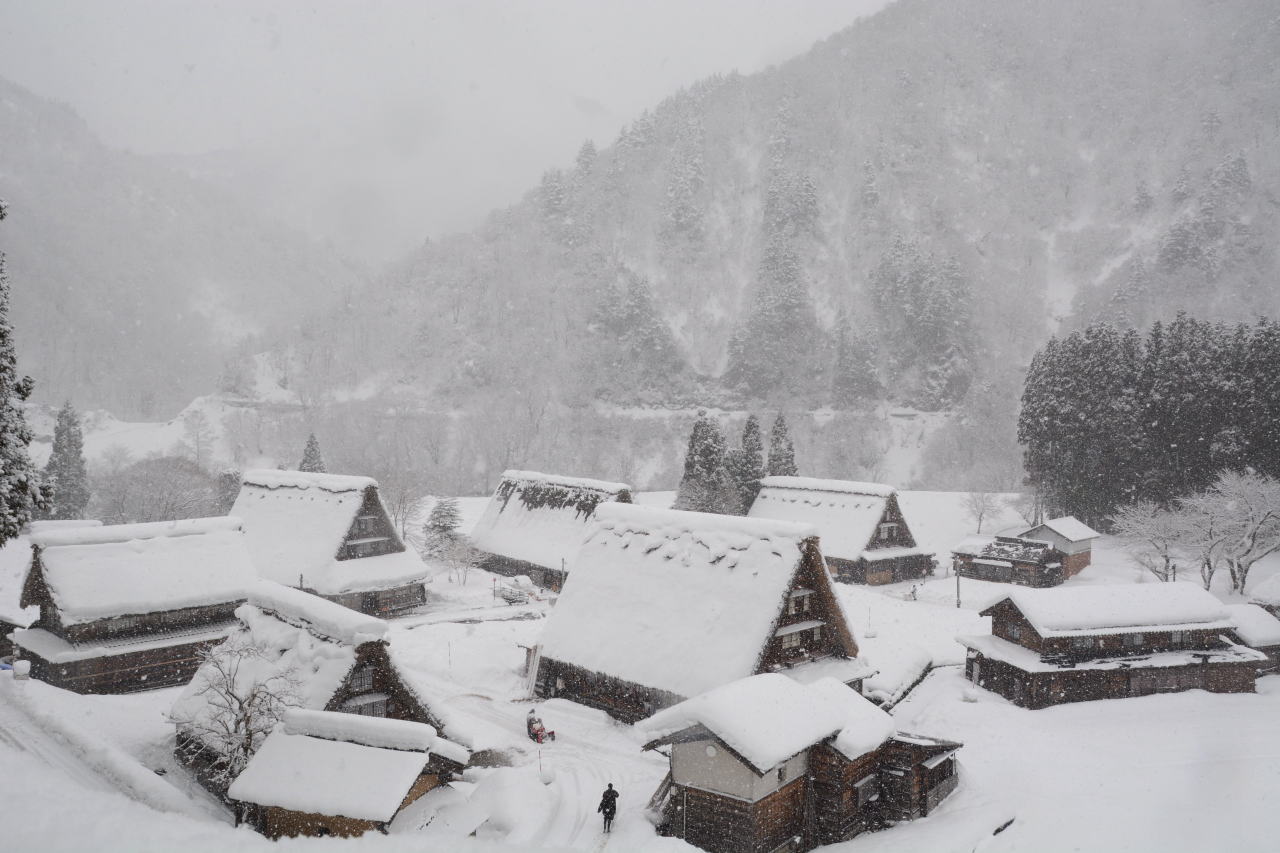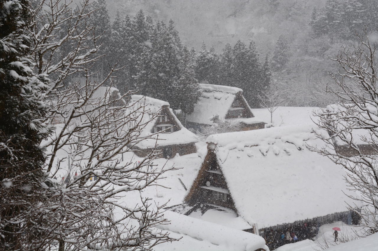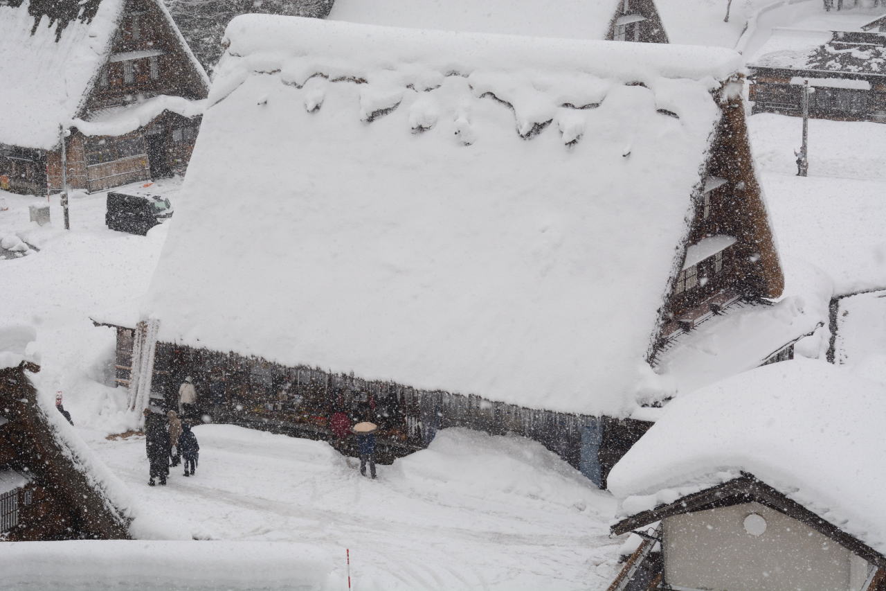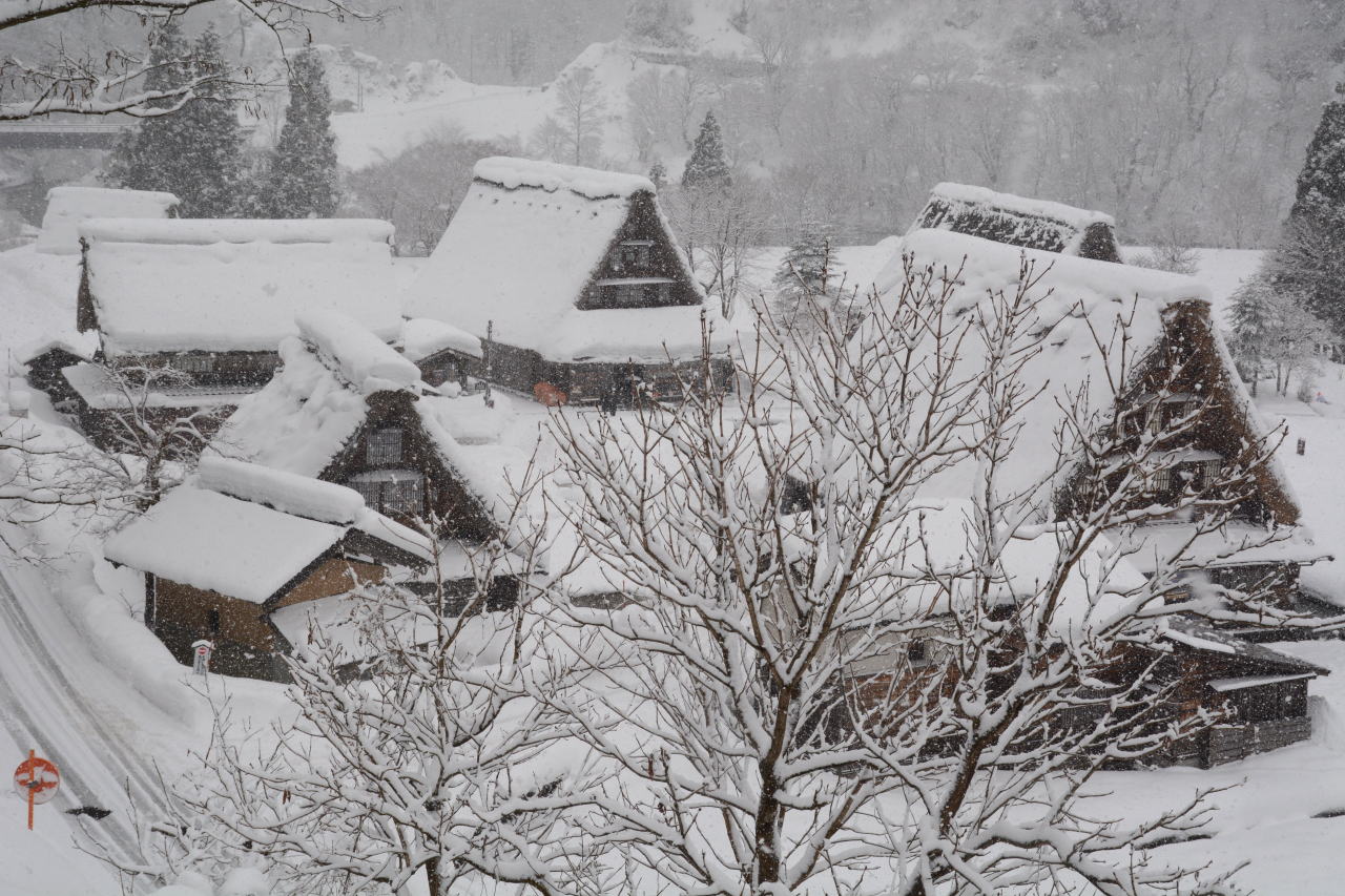 | スーパーセンターシマヤ砺波店で買い物をした後、砺波IC→北陸自動車道→小矢部砺波JC→東海北陸自動車道に入った。ずっと上り坂の東海北陸道は標高が上がるに従い雪が強くなり、ほとんどウェット状態だったが五箇山ICあたりでは路面に積雪が見られた。 「白川郷・五箇山の合掌造り集落」の名称で1995年12月にUNESCOの世界文化遺産に登録されており、今回のルートでは五箇山と白川郷の両方を通ることになる。どちらを訪れようかと調べてみると、白川郷が圧倒的に有名で観光地化しているという記事を読み五箇山を訪れることにした。到着した時には観光バスが三台、その後も続々と観光バスが到着し、エレベーターで集落へ下りてゆく。私は集落へ下りず、展望台から写真を撮るだけにした。この記事を書きながらWikipediaを調べてみると、白川郷荻町集落が大規模、五箇山相倉集落が中規模でこの菅沼集落が小規模な合掌造り集落として世界遺産登録されているということらしい。菅沼集落はまとまっており、フォトジェニックだと思う。 |