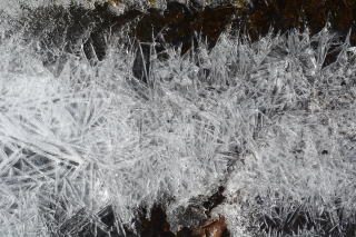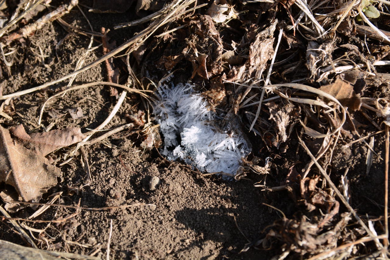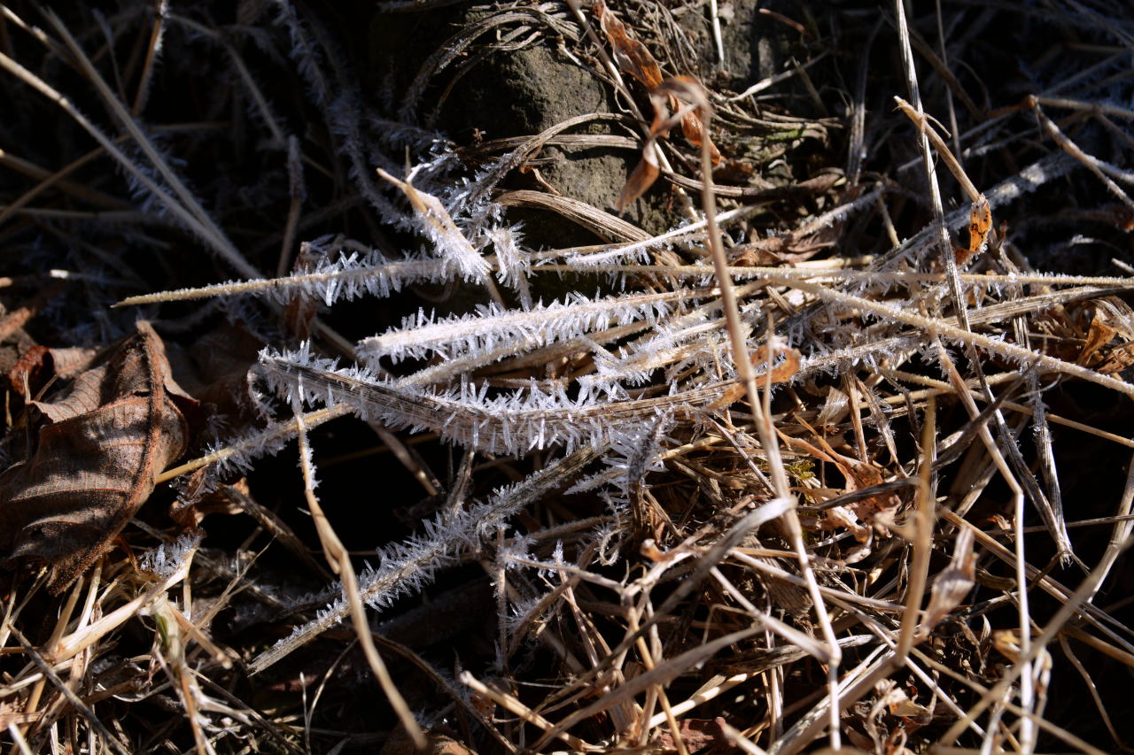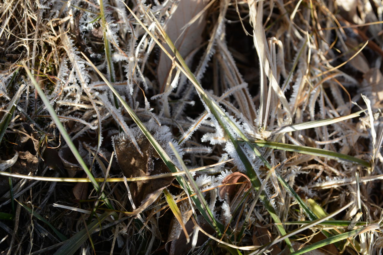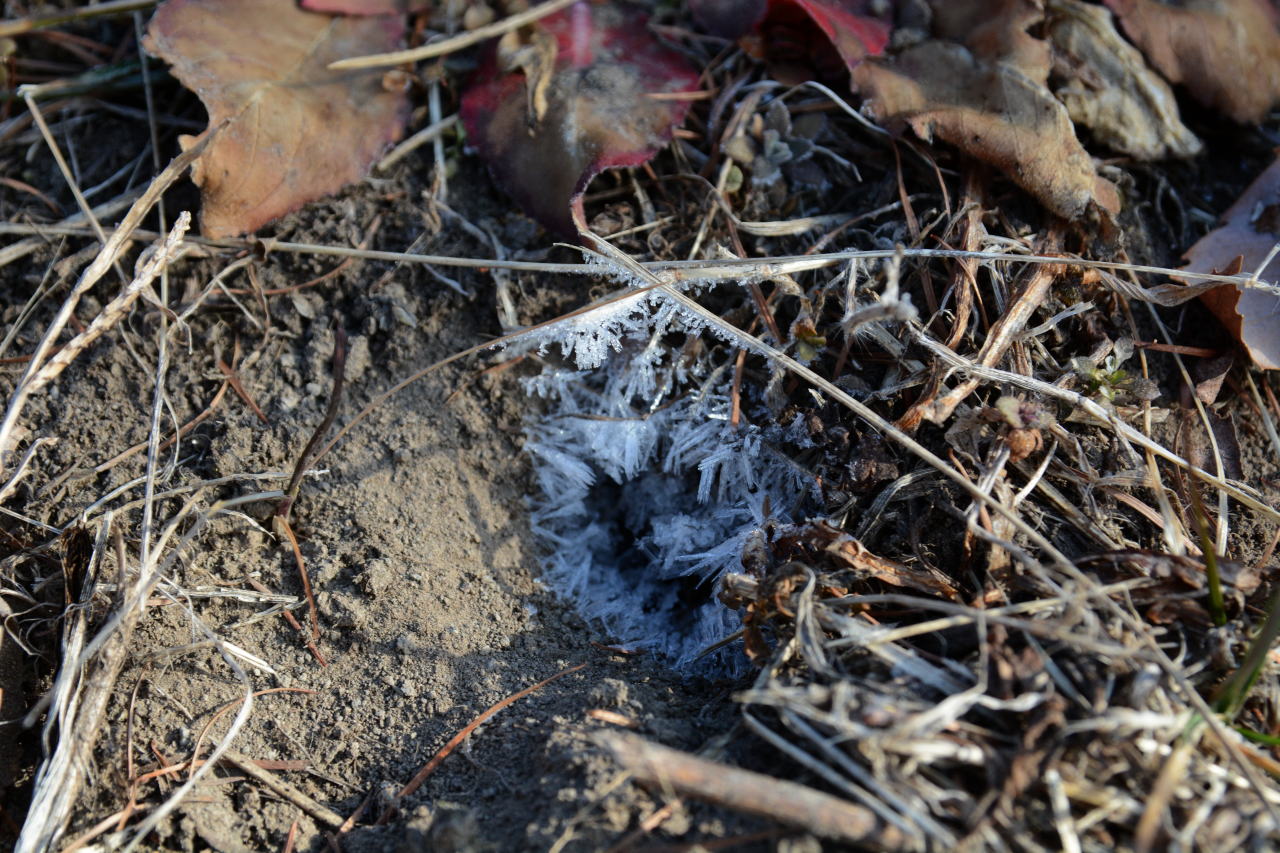 | 朝食をとり、出かける10時までは時間があるので、カメラをもって一人散策した。霜をかぶった植物が狙いだったのだが、乾燥しすぎて霜が降りない。カサカサの大地から、ちょっとだけ水分があるところ、水が流れているところを見つけて撮影した。自然の造形美は素晴らしい。 | ||||||||||||||||||||||||||||||||||||