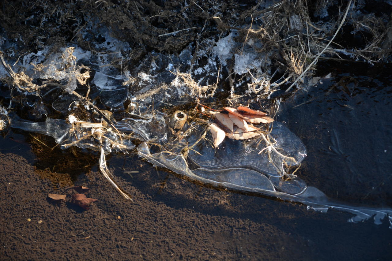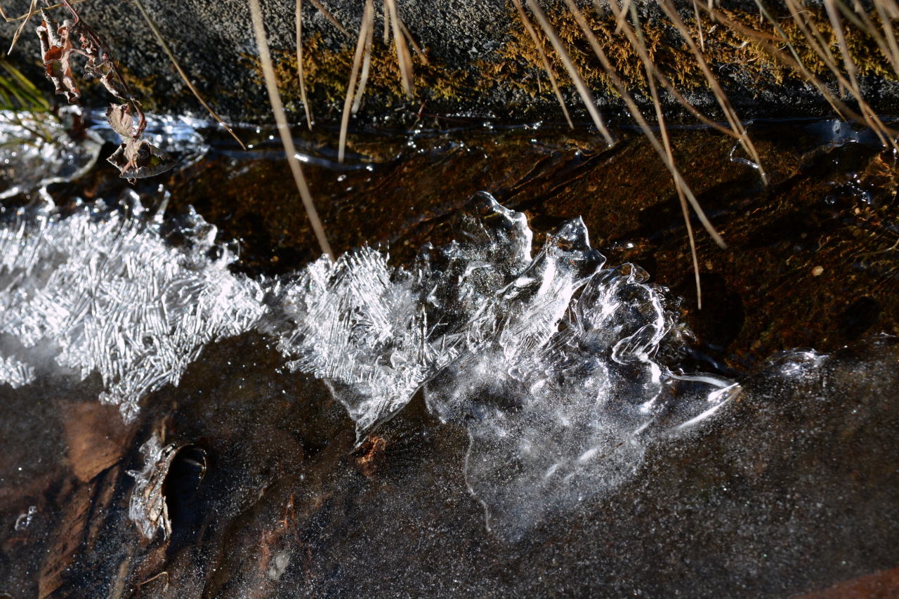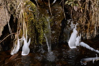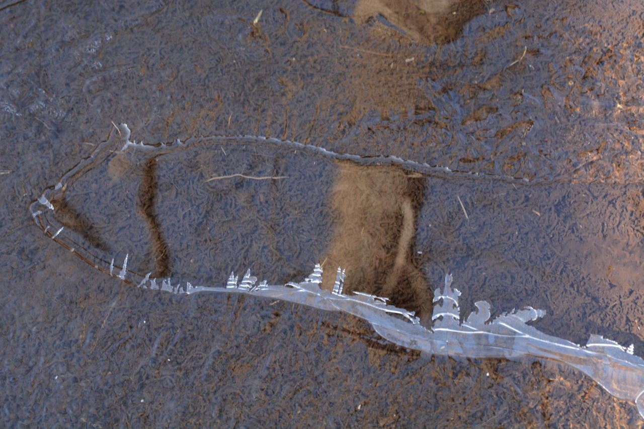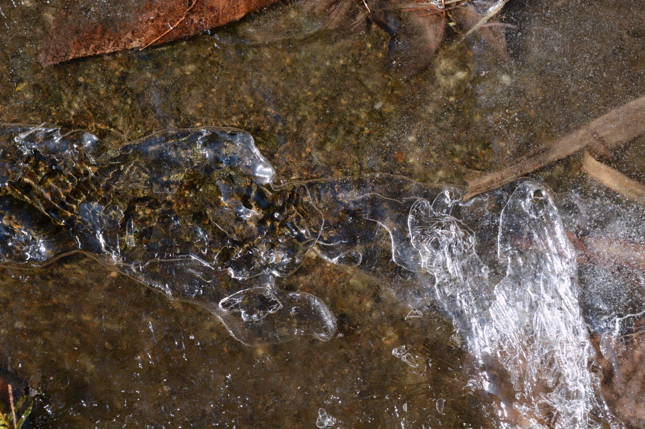 | 朝食をとり、出かける10時までは時間があるので、カメラをもって一人散策した。霜をかぶった植物が狙いだったのだが、乾燥しすぎて霜が降りない。カサカサの大地から、ちょっとだけ水分があるところ、水が流れているところを見つけて撮影した。自然の造形美は素晴らしい。 | ||||||||||||||||||||||||||||||||||||