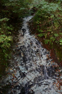滝の白っぽい石が何なのかわからない。 |