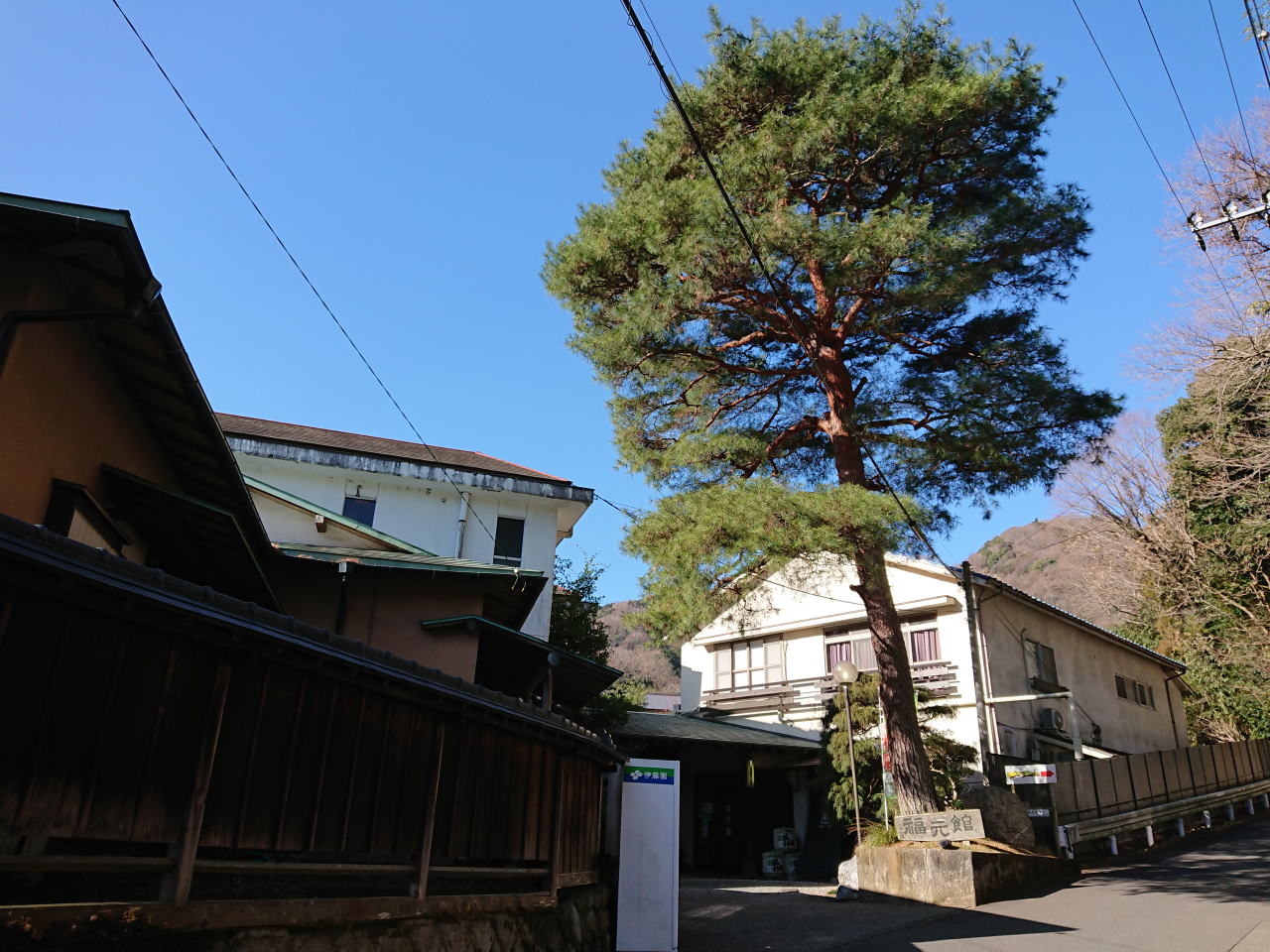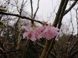 写真はXperia湯河原で回転寿司のランチを済ませ、みやかみの湯で日帰り温泉に浸かっている頃はちょうどピークで土砂降り。福元館にチェックインする頃にはぱらつく程度で、雨に濡れたカワヅザクラが迎えてくれました。 |