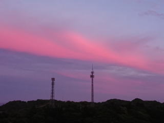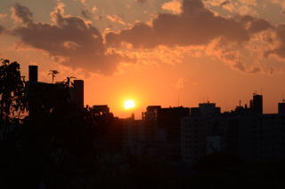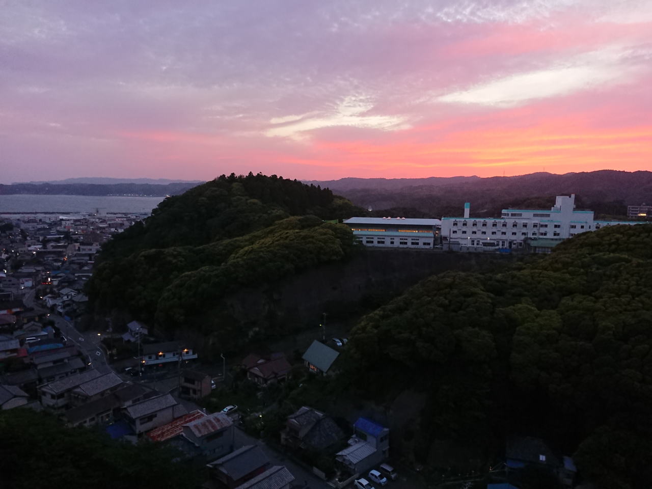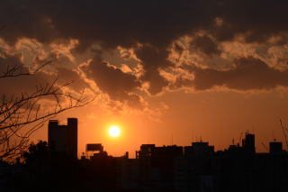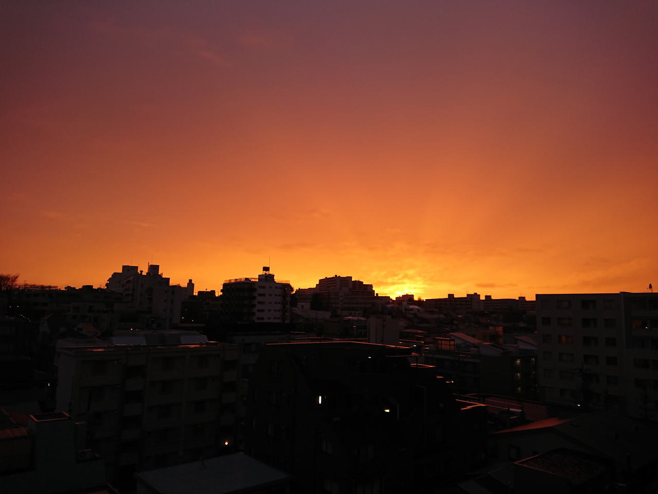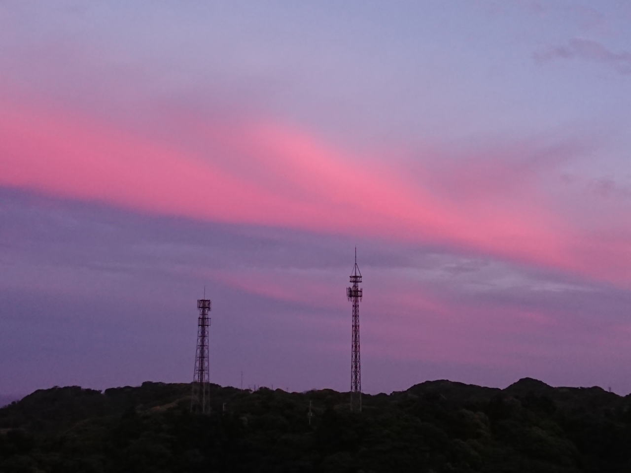 前日の失敗。調べてみると11月3日頃と2月6日頃、天空庭園から見て富士山に夕日が沈むとのこと。2月6日日没時間を調べて天空庭園へ向かう途中、東山小学校辺りで大きな夕日が見えており、天空庭園についた時にはすでにお日様は沈んだ後だった。 |