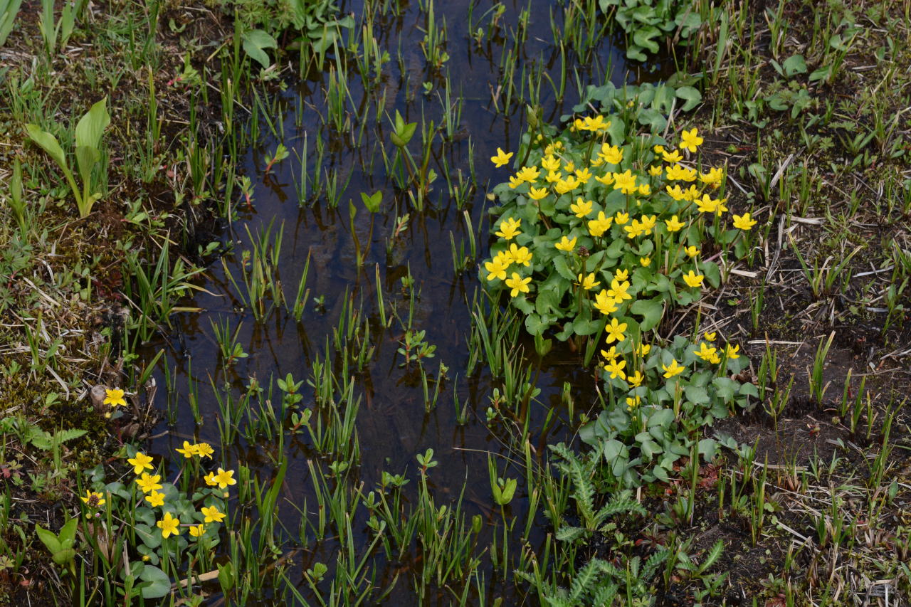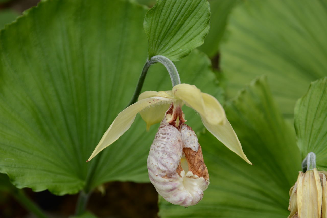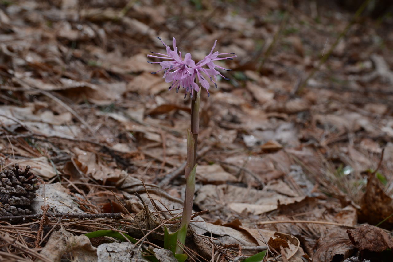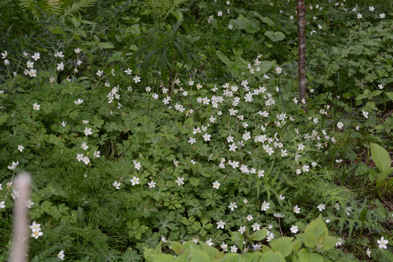 | 道の駅猪苗代でトイレ休憩をして次の目的地を土湯温泉より少し福島駅寄りの四季の里に定めて115号を走行。箕輪スキー場あたりではまだ雪が残っている場所がある。長い土湯トンネルを抜けると少し明るくなり、薄日もさし始め雨はほとんどやんだので、目的地を仁田沼駐車場に変更した。 ミズバショウが見頃を迎えているという仁田沼(にだぬま)には向かわず、駐車場近くにあるショウジョウバカマ群生地を目指すことにして歩き始める。ぬかるみがあり断念して車へ戻ろうとしたとき、林の中にカタクリを発見。よく見まわしてみるとショウジョウバカマもぽつぽつ見えた。駐車場まで戻ってくると目が慣れたせいかすぐわきにショウジョウバカマが見られた。エンレイソウは久しぶり、よく見るとそこそこの群生。 |