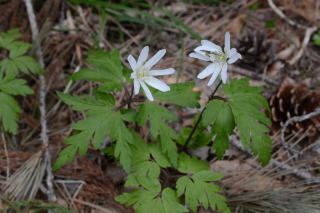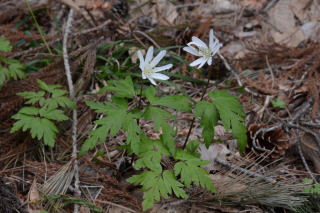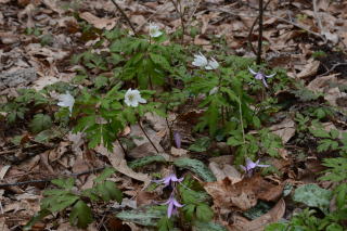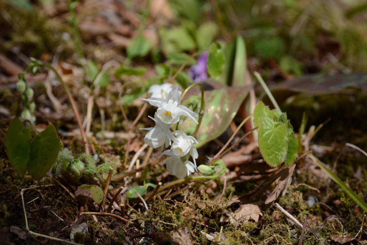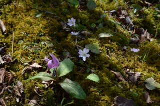 | 旅館へ向かおうと車で移動を始めたがすぐに小さな小川があり、ミズバショウがないか探してみた。ミズバショウはなかったけど始めに目についたのがアズマイチゲとヒトリシズカ。しかしよく見るとヒトリシズカではない。とりあえず写真にとってこれを書きながら図鑑をめくって調べてみるが、愛用している山と渓谷社の野草ハンドブックでは見つけることが出来なかった。みんなの花図鑑サイトで「白い花」をながめてみても、「4月の花」をながめてみても見つからない。あきらめていたところみんなの花図鑑サイトに「写真で調べる『コノハナナニ』」というのを見つけようやく名前を知ることが出来た。こちらはAIを活用した画像検索で、一致する確率とともに複数の候補を上げてくれる。フッキソウの写真は判断しやすかったようで、90%以上の確率で一致するとの情報。便利なものだと「ナルコスゲ?」も調べてみたが、こちらの画像は苦手なようでそれらしい候補は提示されなかった。 早春らしいコラボレーションはかろうじてカタクリの花が開いているもののアズマイチゲは半開なことからもわかるように天気がいまいち。アズマイチゲとカタクリは陽が当たっていればお日様の方を向いているので、正面から撮れたのだが曇り空であちゃこちゃ向いているので上からしか撮れなかった。アングルがいまいち。 |