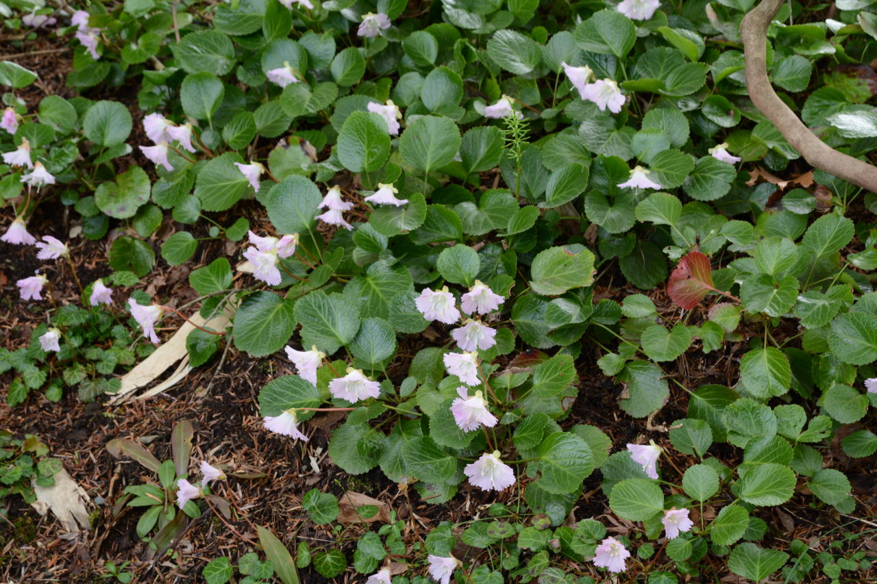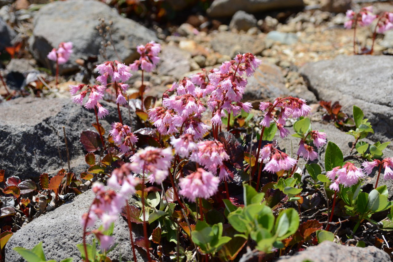 | 素晴らしいイワカガミの群生。火山性ガスの耐性があるのがこの場所ではイワカガミの独り勝ちの様相だけど、図鑑にそのような説明はない。岩場に生えて、葉に光沢があり鏡のように見えるということが名の由来。 | |||||||||||||||||||||||||||||||||||||||||||||||||||||||||