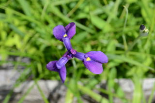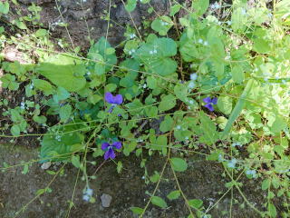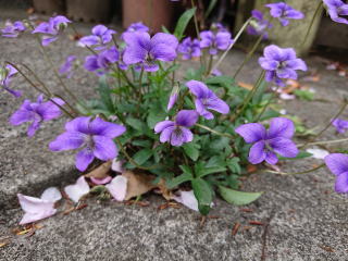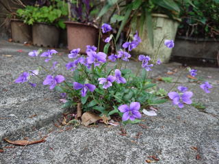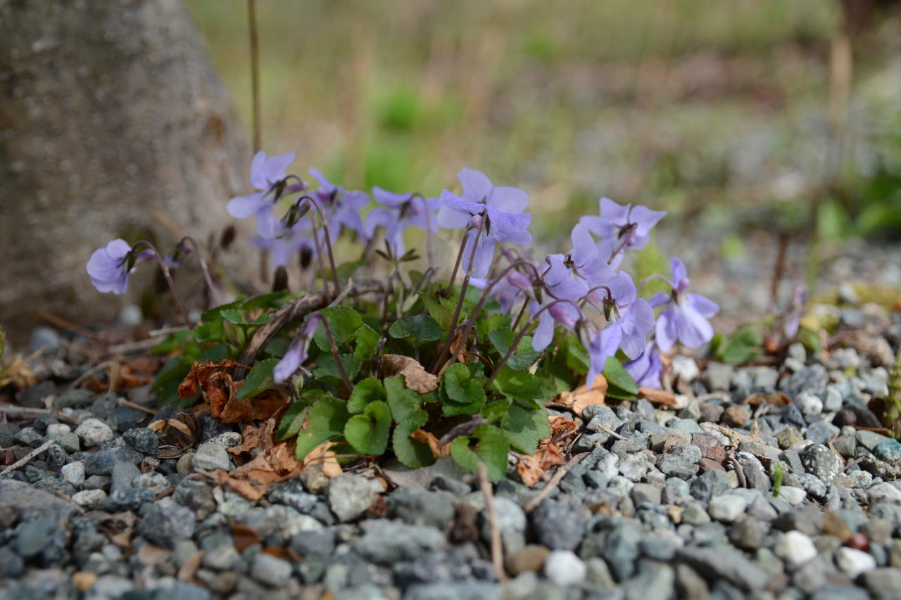 | 近所のお宅にスミレがきれいに咲いていたのでちょっとお邪魔して撮影した。写真を確認すると花を置く位置が失敗だった。下の余白を狭くして上の空間がほしい感じで、窮屈な印象。左の枯れ葉も撮影前にお掃除しておくべき。 翌日反省を生かして撮ったつもりがやっぱり窮屈な感じで、この二枚を比べるとどっちが良いとも言えず反省が生きてない。「きれいだな、人にも紹介したいな」という思いを伝えきれる写真を撮りたい。 |
