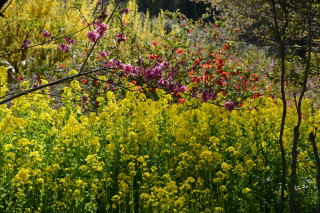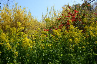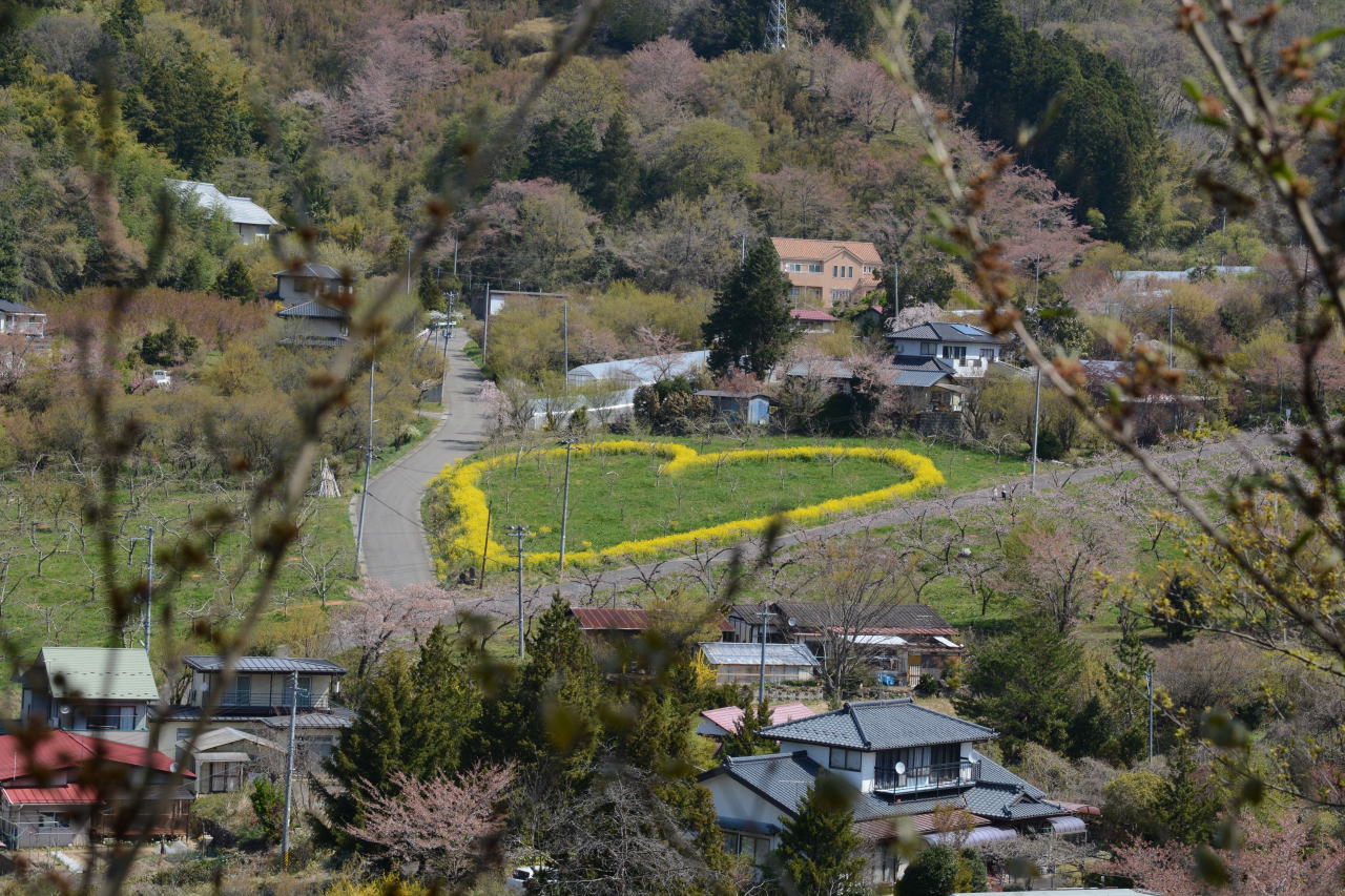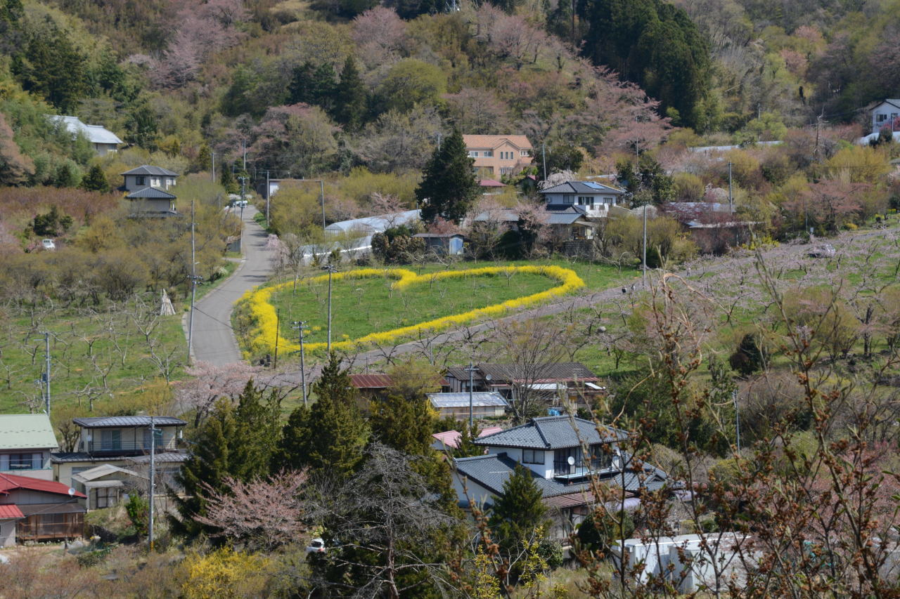 | 菜の花で作ったハート。はじめに撮影した場所では木が写り込んでしまったので、障害物のない場所を探して再撮影。写真になって比べてみると、木が写り込んでいた方が奥行きがありいい写真だと思う。はじめから障害物のないアングルを見つけていたら、フラットなつまらない写真だけになっていただろう。いろいろ撮って見るもんだな。 | |||||||||||||||||||||||||||||||||||||||||||||||||||||||||