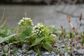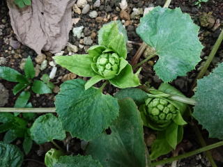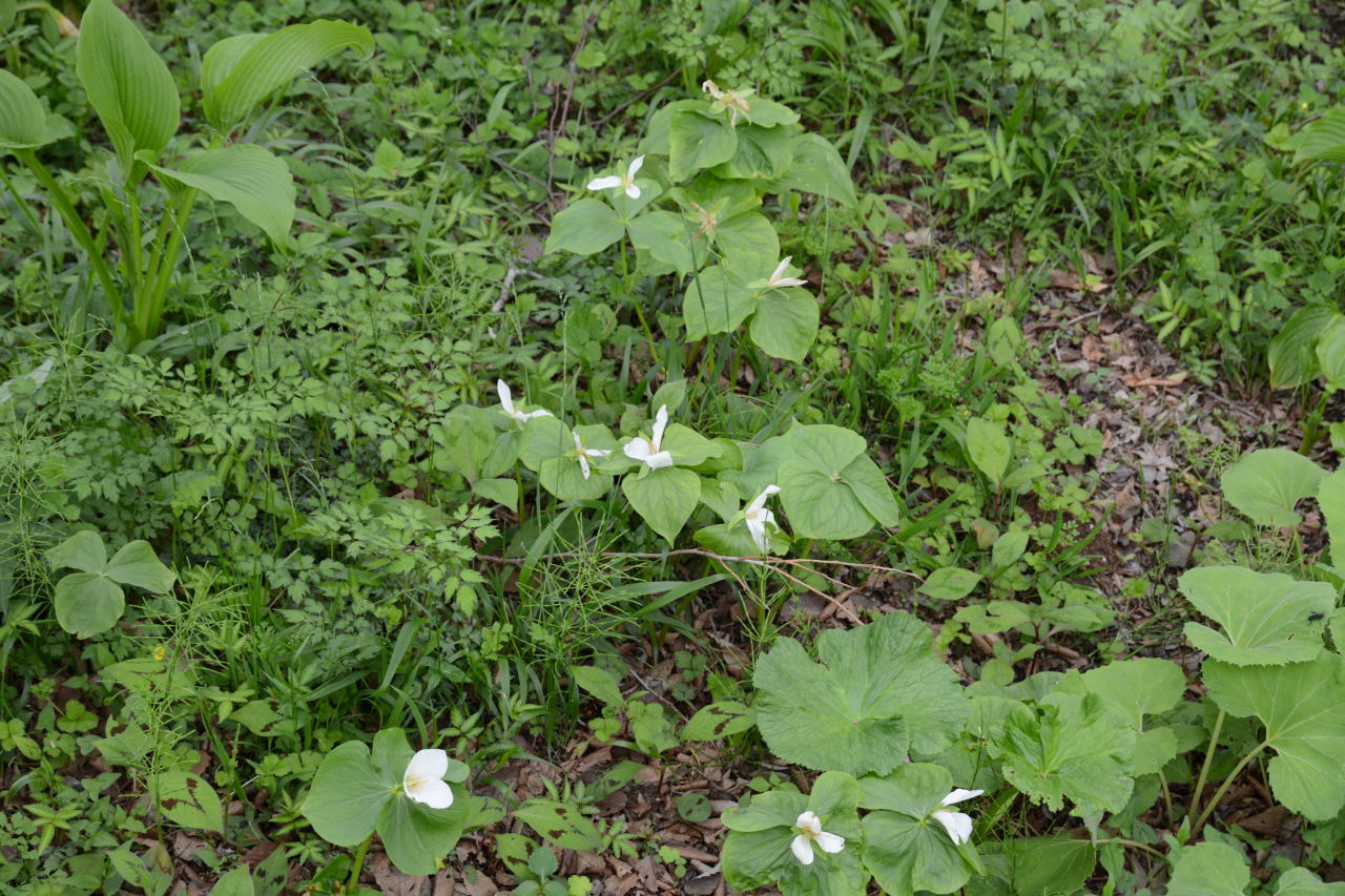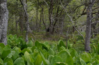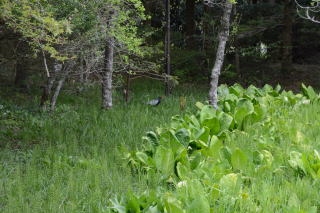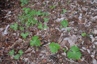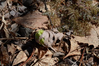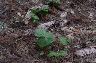 | ビッキ沼へ向かう道は地図上でムジナ道かなと思ったけど意外としっかりした道で115号の旧道のような気がした。ビッキ沼のミズバショウは仁田沼よりも早いようで、影も形も見られなかった。探し方が悪かっただけかもしれないが雨も降り始めたので早々に退散。途中道端でエンレイソウを発見し写真に収めた。仁田沼駐車場の花と比べ萼が緑色なので花が咲いたばかりかな?こちらも群生。 | |||||||||||||||||||||||||||||||||||||||||||||||||||||||||