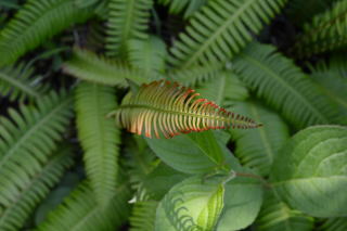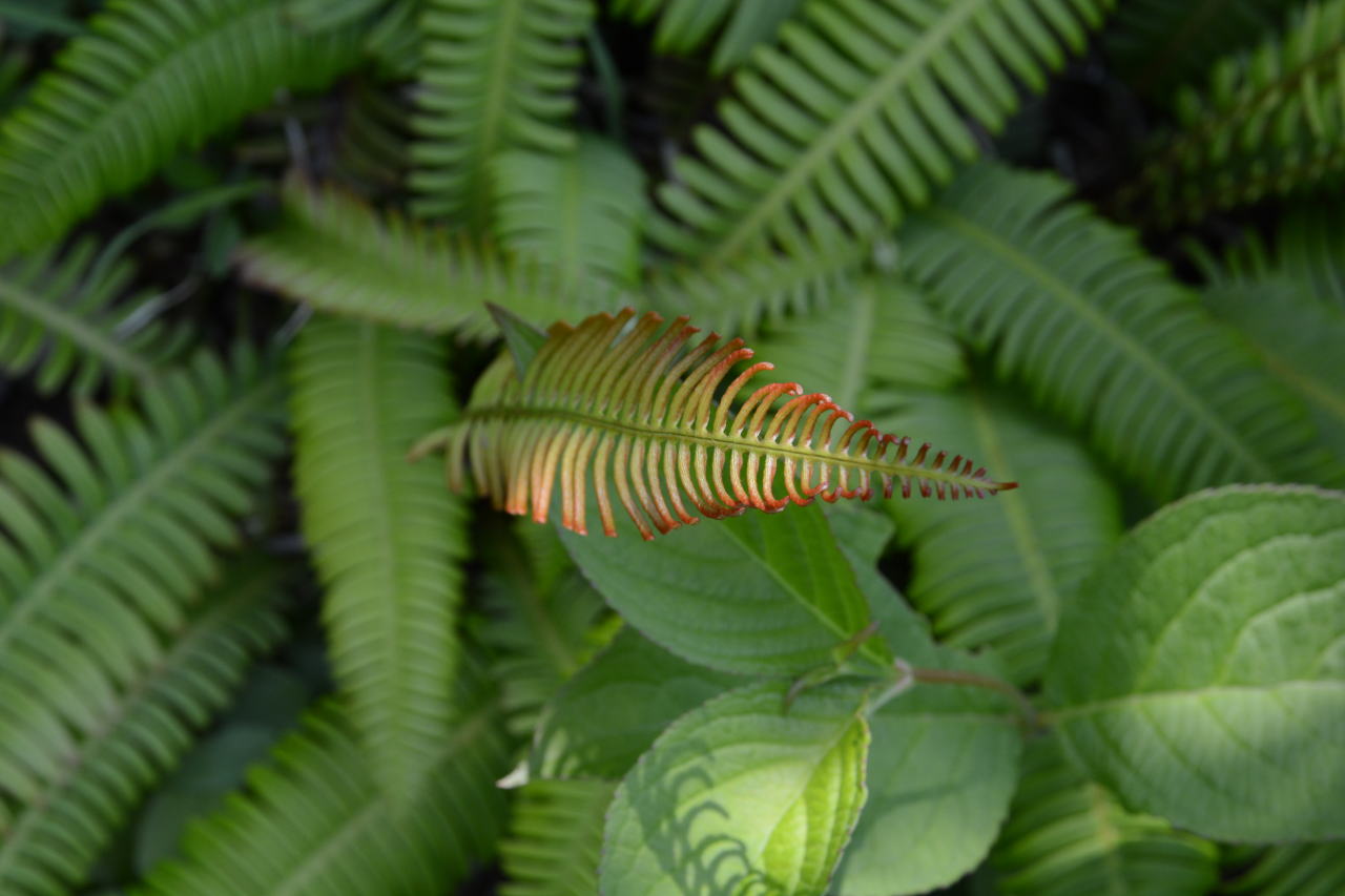 | 土湯温泉のつつじ山公園と女沼を目指した。二か月前にショウジョウバカマなどを撮影した場所で、平日一般客は皆無。静かでとてもいい雰囲気。 このシダを見た時は「これがオールブラックスのシダだ」と思った。マークにそっくりでしょ。調べてみるとマークになっているのはシルバー・ファーンという普通っぽいものを図案化したもの。シダの種類を調べるのは難しく、このシダの名前はわからず。 |