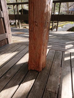 | コテージの風呂は周囲から見られないよう囲われているのだがそれがあだとなり見晴らしが悪い。と思っていたら窓が開いて開放的に!テラスを建てる際木をできるだけ切らないよう工夫したようだけど、めり込んでいる方はどうなってるの? | |||||||||||||||||||||||||||||||||||||||||||||||||||||||||