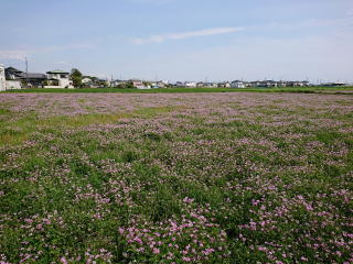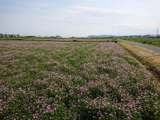 | 昼食を済ませ二宮町中里にある小田原ひものの山安で干物を買い、みどり園でハッサクを買い、ふじ丸湘南シラス販売所でシラスを買い、あさつゆ広場で野菜を買いソフトクリームを食べて帰途につく。毎回こんなフルコースではないのだが、とりあえず二宮へ来る用事がなくなるのでこんな感じ。フルコースといえば二宮町二宮の豆友もよく訪れる場所だ。豆友は創業百年か。 あさつゆ広場から小田原厚木道路南東側に並行して走る県道63号で厚木西ICへ向かっていると農地がピンク色に染まっていた。「レンゲだ!」と思い見に行ったのがレンゲ祭りが行われる伊勢原市大田地区。こんな一面のレンゲを見るのは久しぶりというか初めてかもしれない。以前大磯町で数カ所見た記憶があるのだが、最近は減っている印象。レンゲは田んぼの肥料に漉き込むため稲作農家が秋に種をまいている。機械化が進みこれまでより早く田植えを行うようになり、レンゲの肥料では時期が合わなくなってきたことがレンゲ畑が減っている理由らしい。 |