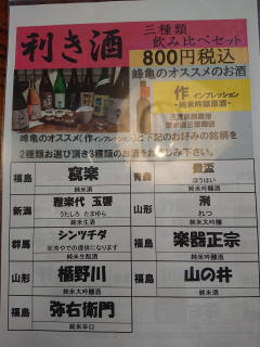 | タクシードライバーにおすすめの店を聞き笑門そば峰亀曽根田店にやってきた。生ビールの後、飲み比べセットで作(ザク)インプレッション、福島の楽器正宗、山の井を注文。作インプレッションは三重県鈴鹿市のお酒で福島のお酒に負けずにおいしい。うな丼、蕎麦もうまかった! | |||||||||||||||||||||||||||||||||||||||||||||||||||||||||