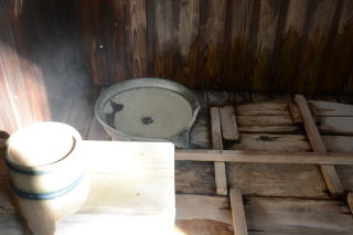 | 旅館の名の由来となっている玉子湯や露天風呂は建物から出てすぐにあるが利用時間は22時迄の制限がある。前日到着してすぐに行ってみると旅館の方が、「カモシカが来ています」と教えてくれた。残念ながらカメラを持っていなかったので撮り逃したが結構近くで悠々と餌をはむカモシカを見ることが出来た。白い姿は冬毛で、これから茶色く変わってゆくとのことだった。 チェックインした日は天渓の湯、玉子湯、大浴場滝の湯、内湯仙気の湯を堪能した。露天風呂は翌朝男女入れ替えが行われ、天翔の湯で朝湯。素晴らしい硫黄泉。絶対再訪! |