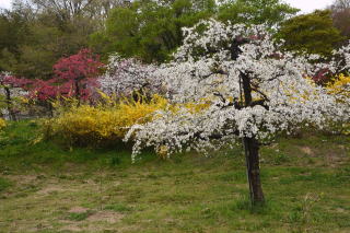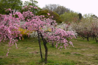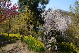 | かなり混雑するとのことで入念に調べ福島駅に到着した。花見山への観光客向けに手荷物預かり所があるとのことだったが、前日でシーズン終了で手荷物はコインロッカーへ預けることになった。「花見山定額で」とタクシーに。渋滞しても通常料金で済むように定額料金が設けられている。自家用車は手前の駐車場を利用し歩くことになるが、タクシーは公園入口まで連れて行ってくれる。帰りの客待ちタクシーはなく、追加料金なく待っていてくれるというありがたい提案をもらって見学に出かける。 公園となっているが一帯は公有地ではなく花卉園芸農家の私有地である。東海桜を切り花として出荷しているほか梅、桃、ソメイヨシノ、レンギョウ、ボケ、サンシュユ、モクレン、ツバキ、菜の花等が植えられまさに桃源郷。今年は4月1日頃ソメイヨシノが見頃を迎え例年より二週間早いとのこと。ピークに訪れることはできなかったが人出が少なくゆっくりと眺めることが出来た。 |
