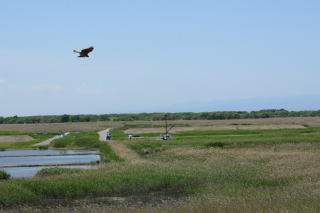 | コウノトリ見物再挑戦 前回たまたま幼鳥の足環装着の日に当たってしまい見ることが出来なかった渡良瀬遊水地のコウノトリ見物プラス撮影に再挑戦。情報では6月3日にヒナが巣立ったとのことで、まごまごしているとどこかへ行ってしまうのではないか。保証はないけどぜひ一目見てみたいと車で向かうことにした。子亀のうどんもまた食べたいし。鳥を撮影するための機材は持ち合わせていないので、撮影の方は出来る範囲でというレベル。 写真 カメラ:NIKON D7100 撮影モード:1.3クロップ 4800×3200ピクセルFINEモード フォトレタッチソフトで色調濃度の調整を行い320×213ピクセルにサイズ変更。 写真をクリックすると400%拡大写真を表示します。 |