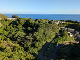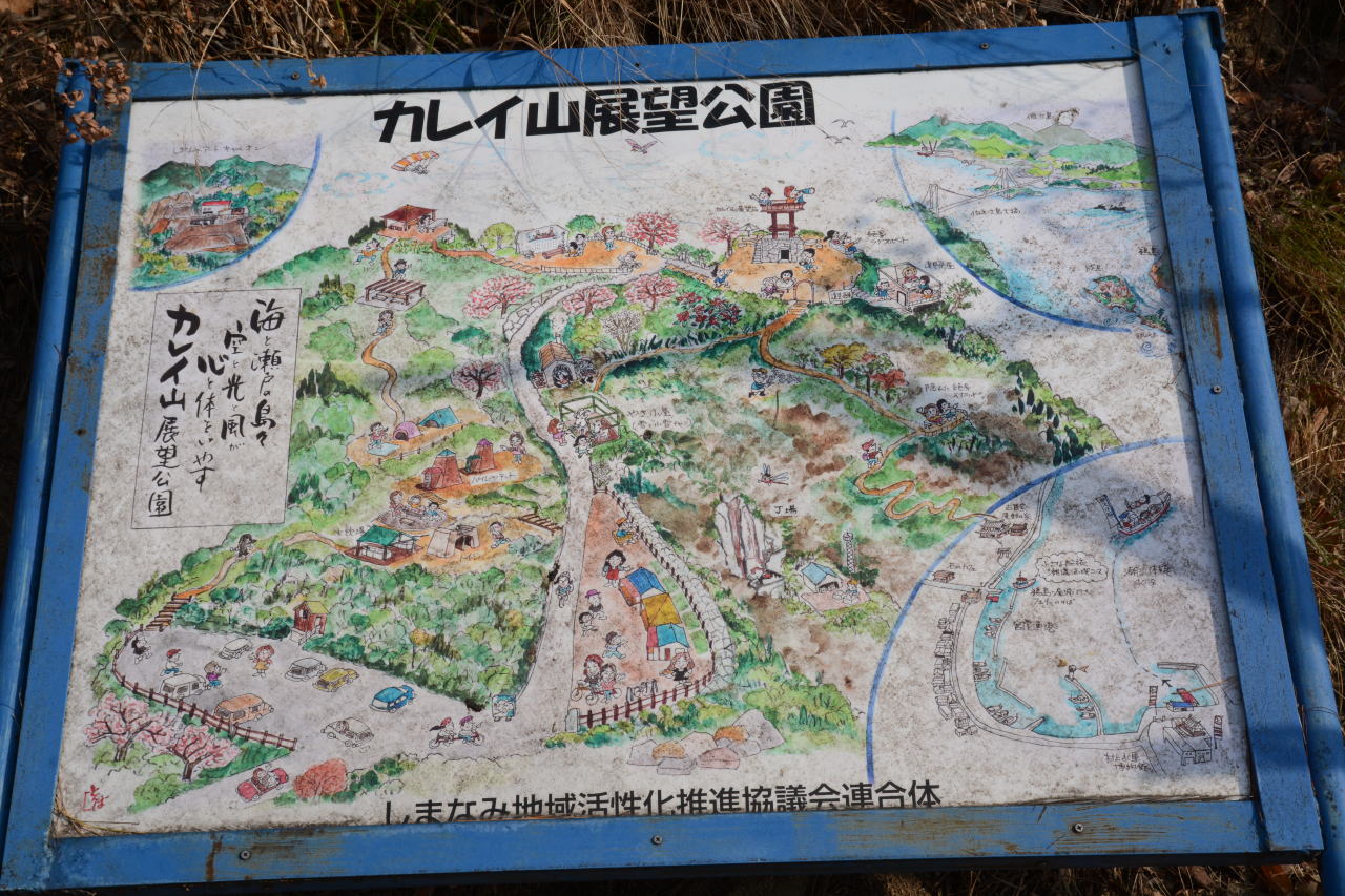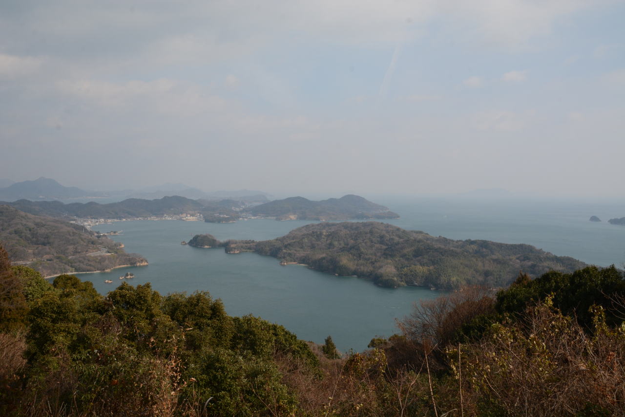 | 大島には二つの展望台があり、こちらカレイ山展望台は絶景だがさびれていた。 |