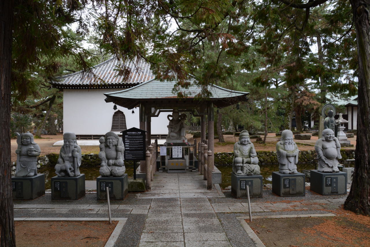 当寺は、「さぬき七福神」巡りの一柱として、創建時より深い係わりを持つ弁財天を主尊としてお祀りしています。特に主尊の大理石像はその美しさで有名です。聖武天皇の願いが込められた礎石を眺めながら、森林浴の効果の高い松林の中で、古代から続く日本文化と精神性に触れ、心穏やかなひとときをお過ごしください。