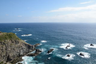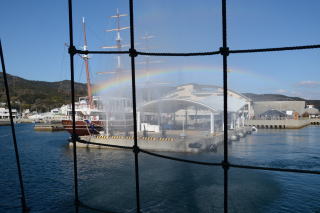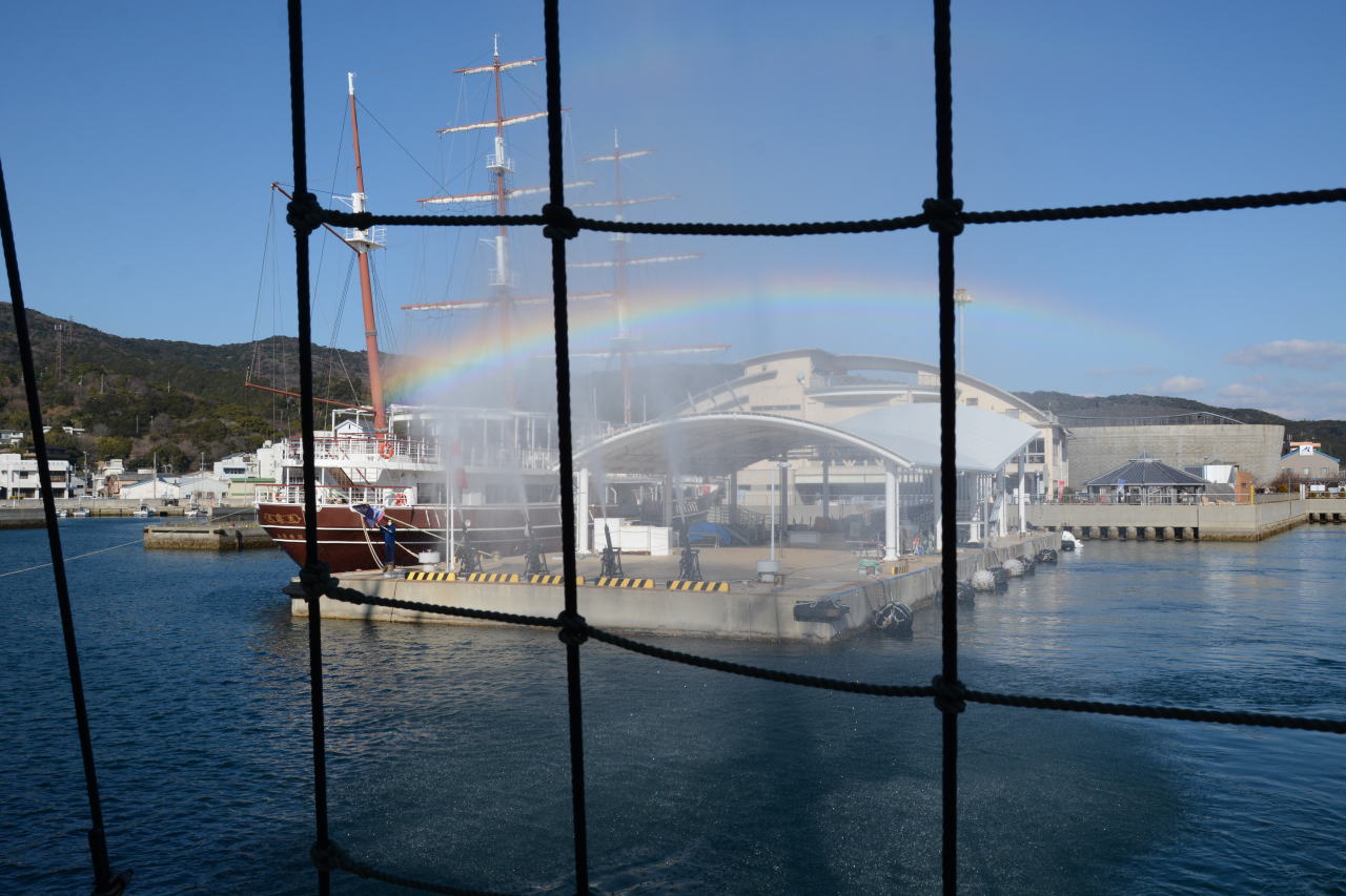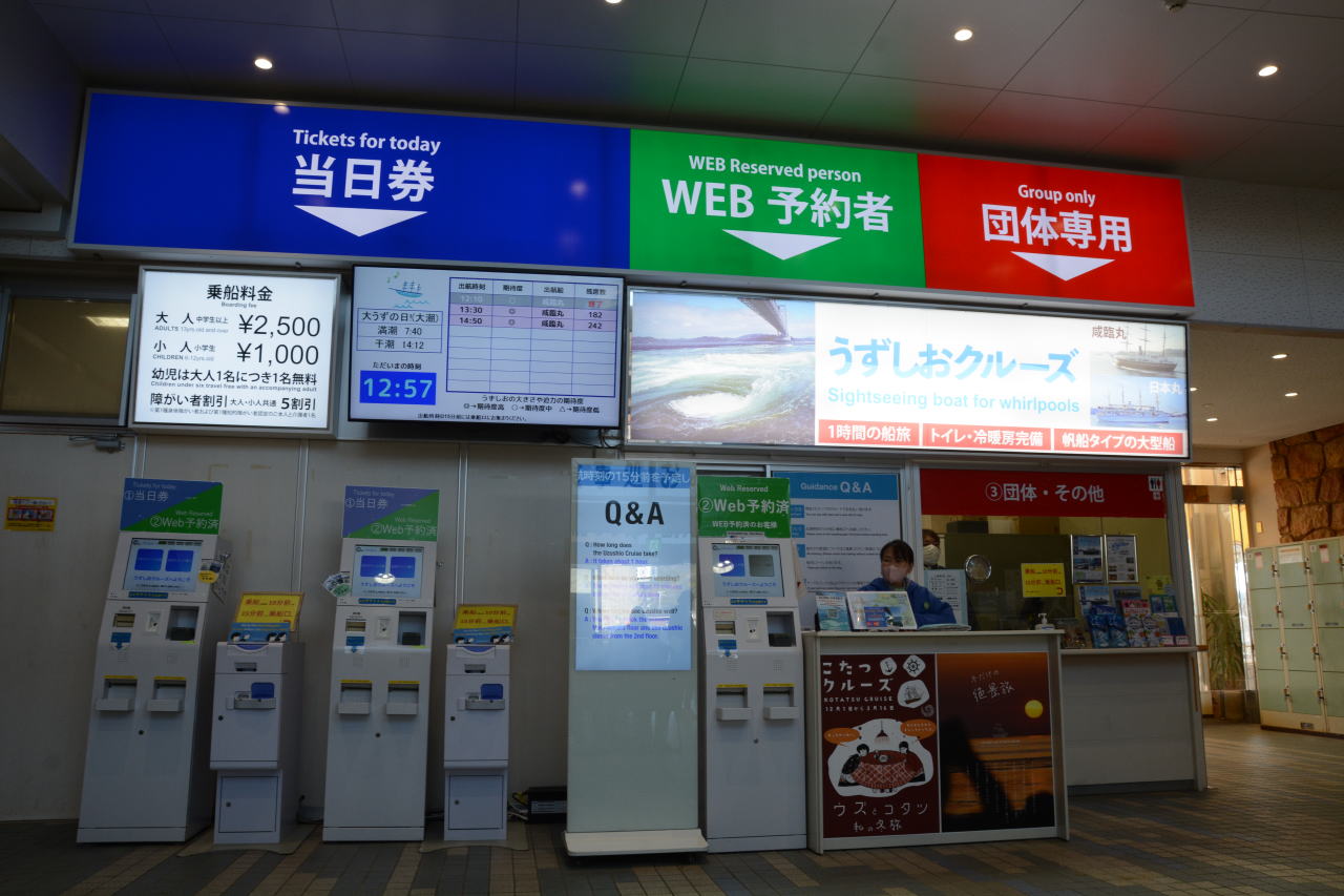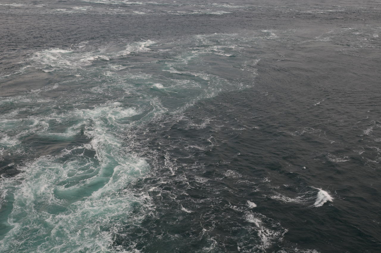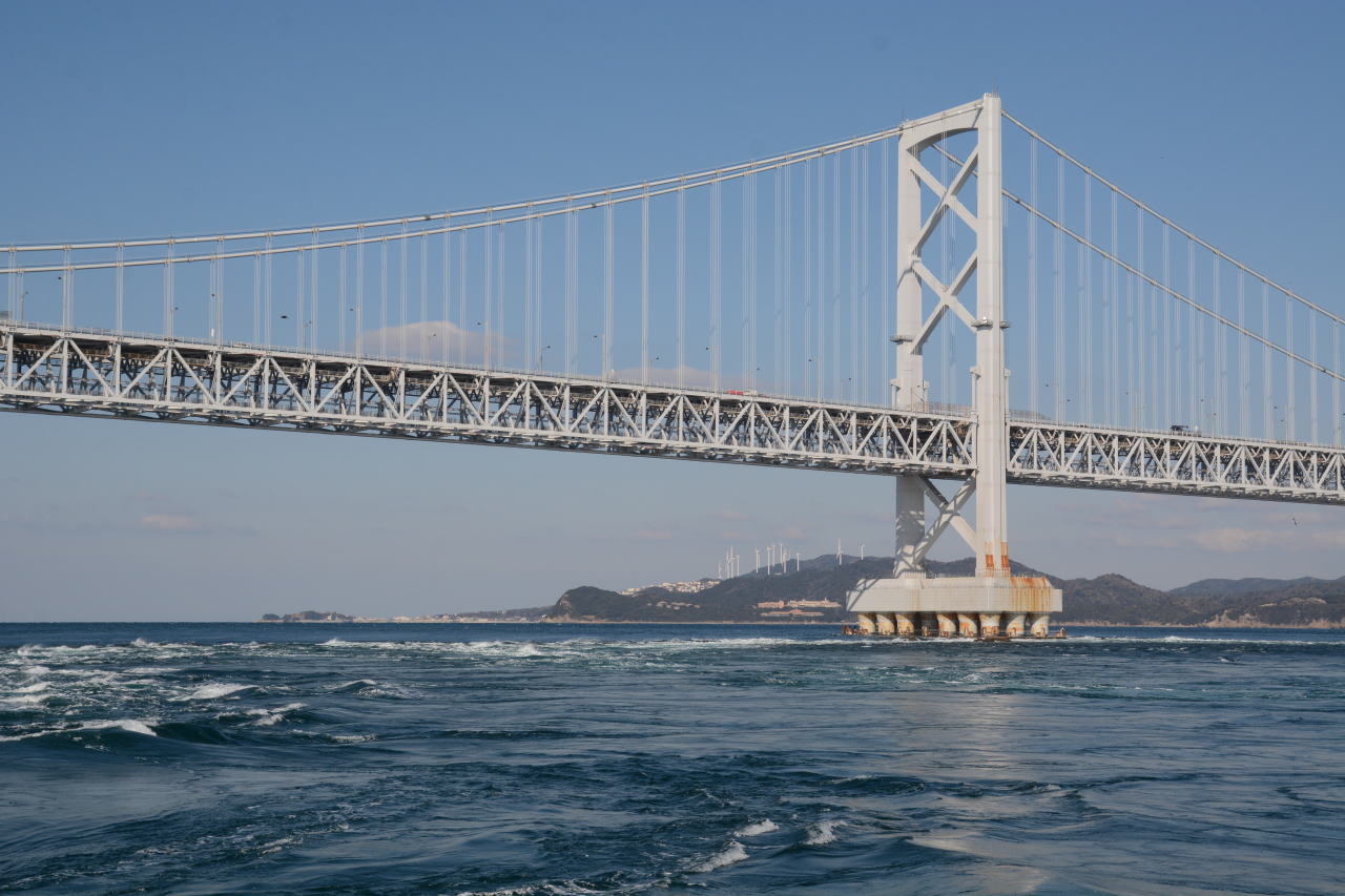 | 栗林公園を歩き回る体力はないと考え、翌日の観光予定地の大鳴門橋渦の道へ、渦潮は潮位の変化に影響されるため大潮や小潮によって状況が違うらしく、この日はかなりいい状態の渦潮とのこと。渦潮初体験。テレビなどで状況の良い渦潮を見ることはできるが実際に現地を訪れてみるべきものと強く感じた。渦の道はかなり風が強かった。 |