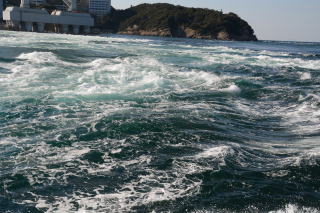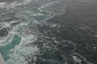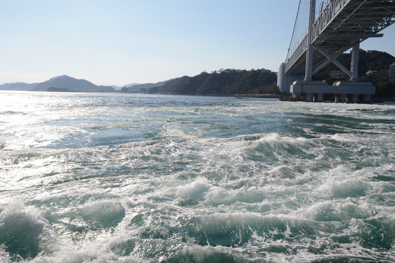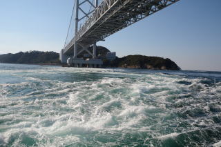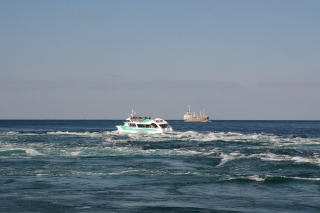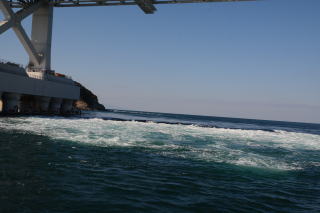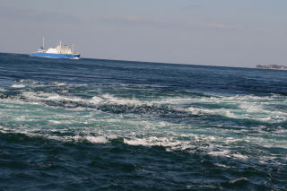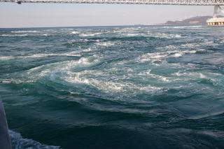 | うず潮観光船は鳴門海峡の両岸徳島県鳴門市と兵庫県南あわじ市からの二種類あり、私が乗ったのは淡路島から。潮がよくダイナミックな流れを見ることができ、この観光船はおすすめ。話に聞いたりテレビで見るのとは違い、やっぱり体験してみるものだと思う。 |