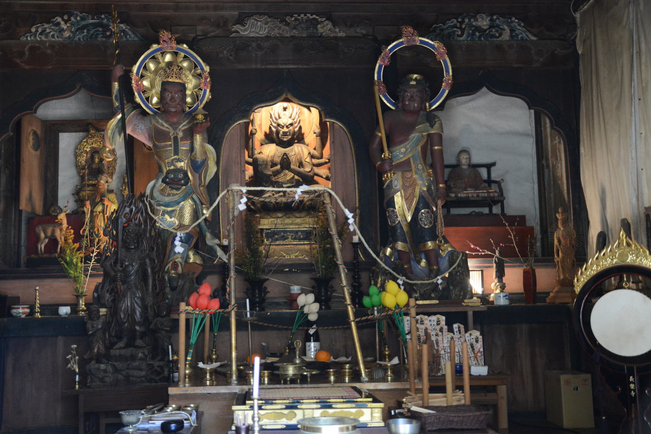 本堂は四国最大級の純木造建築であり、本尊は一木造りの仏像として四国最大です。さらに、奈良時代の作と考えられる四国最古の梵鐘とともに、これら三点が国の重要文化財に指定されています。これらの文化財は、当寺の歴史と文化的価値の高さを物語っています。